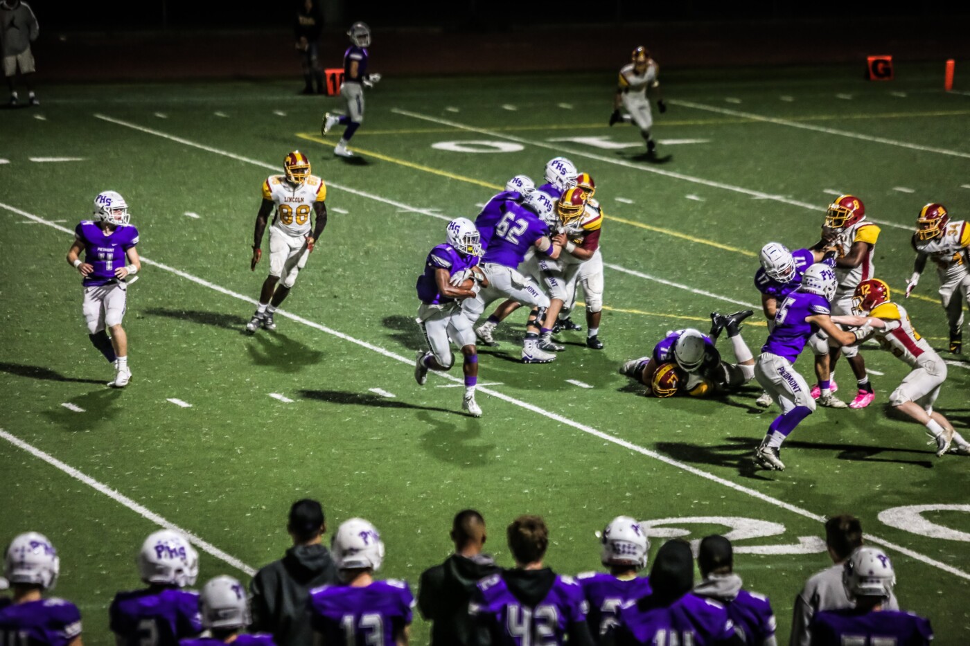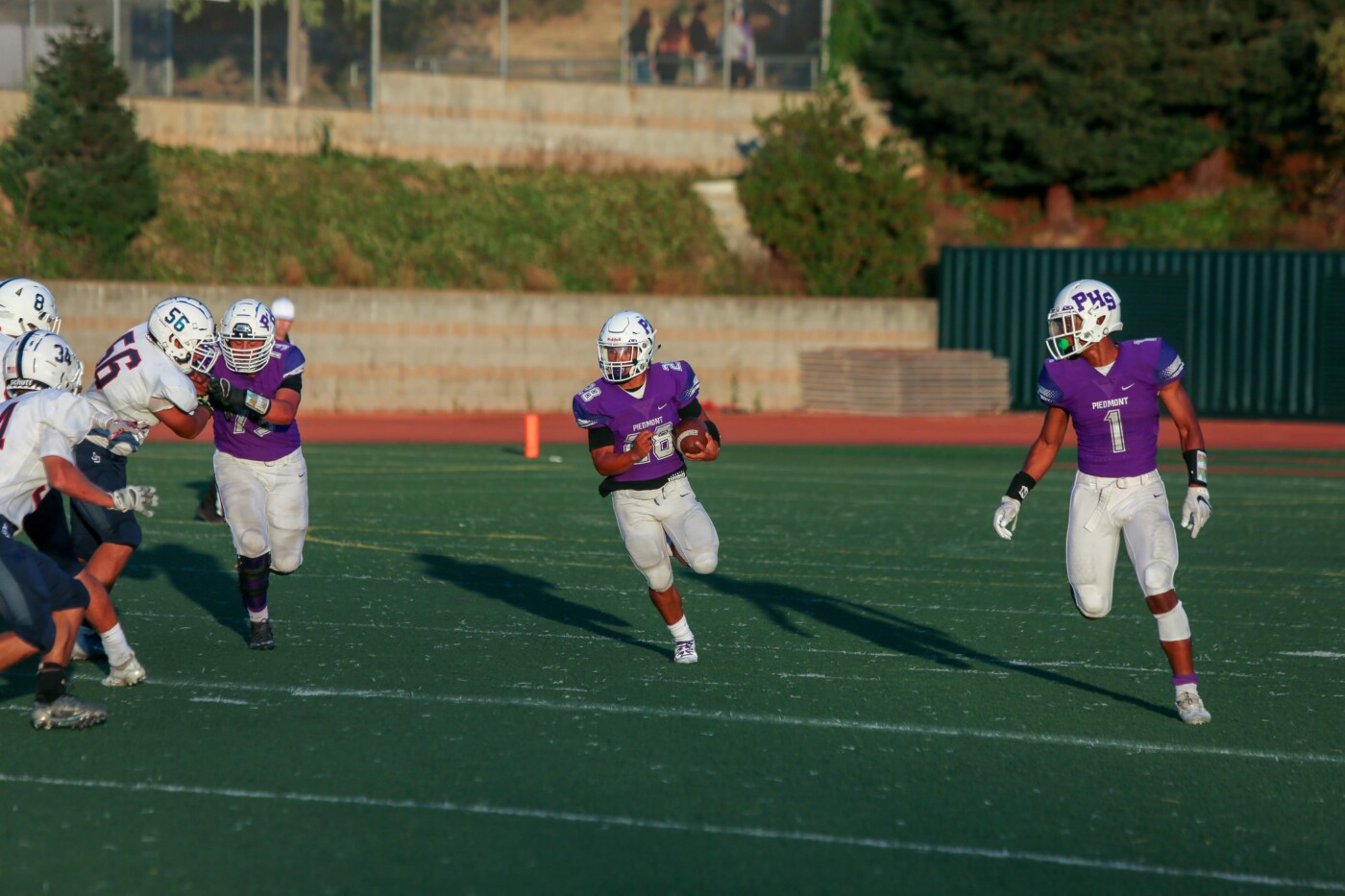 The Highlanders got off to a great start to the season, with victories over Justin Siena (28-7), Rodriguez (55-24), Menlo (30-28), and Salesian (38-14). On September 14, they faced their first real challenge of the season, the Lincoln High Lions from San Francisco. Under the Friday Night lights at Witter Field, Lincoln prevailed 44-34 in a hard-fought contest. The Highlanders then faced the toughest part of their schedule, with games against conference rivals San Leandro, Encinal, and perennial power Bishop O’Dowd. Piedmont was up to the challenge; however, the combination of injuries to key players and the depth of these larger programs was too hard to overcome and the Highlanders dropped all three games. Following a narrow win against Berkeley and a loss to Castro Valley, the Highlanders hosted a first round NCS playoff game. Their opponent was the Justin Siena Braves, the team they had defeated to start the season. Despite a productive offense, the Highlanders were unable to contain the Justin Siena passing attack and fell to the Braves, ending their season.