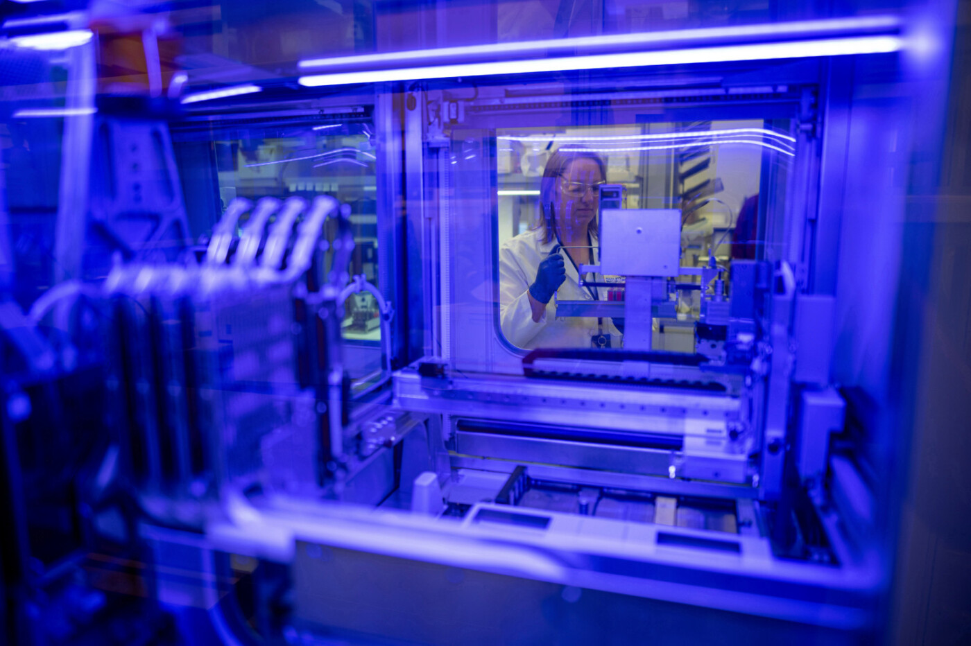 Working in a laboratory nestled inside containment rooms and cut off from the world by filters, scientists dressed in space suit-like protective gear are feeding cells to a virus isolated from a COVID-19 patient at UC Davis Medical Center.