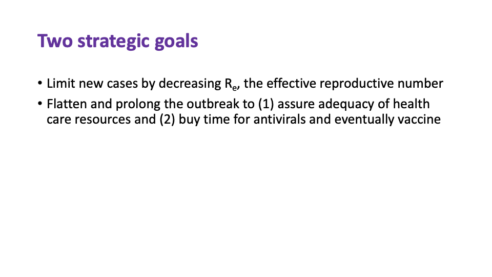The effort to “flatten the curve” is to ensure there is adequate health care available and to buy time for researching a vaccine, which he said will — or at least should — be when normal life resumes.
