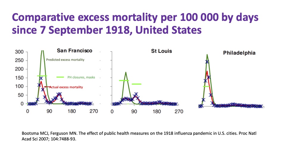 “Winter is what really scares people who do what I do,” Rutherford said. “The reason is the 1918 influenza pandemic” that killed almost 1 percent of Americans. San Francisco, as now, had mandated wearing masks and was ahead of most cities in preventing new cases. But the mandate was ended under great public pressure in November 1918 and transmission of the virus soared, with 3,000 additional deaths by December.