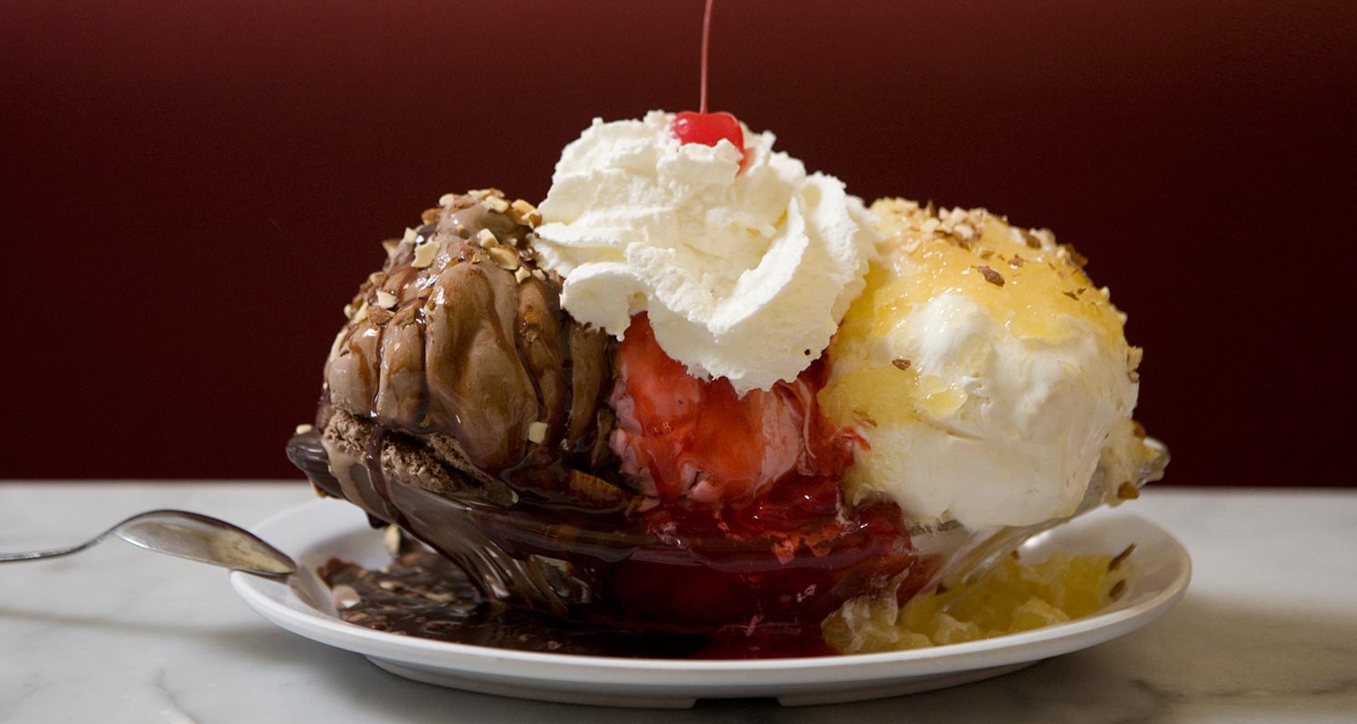 Until that time, it’s bring-it-home crab salad, tuna melt, grilled chicken and other sandwiches. Or bacon, cheese, avocado and beef burgers with curly fries or onion rings; plus salads, sodas, and of course, ice cream floats, banana splits, create your own sundaes and the ever popular Black & Tan. To avoid undo melting, we recommend disregarding conventional advice about the order of mealtime operations — go ahead and enjoy your Fentons’ dessert before your main course.