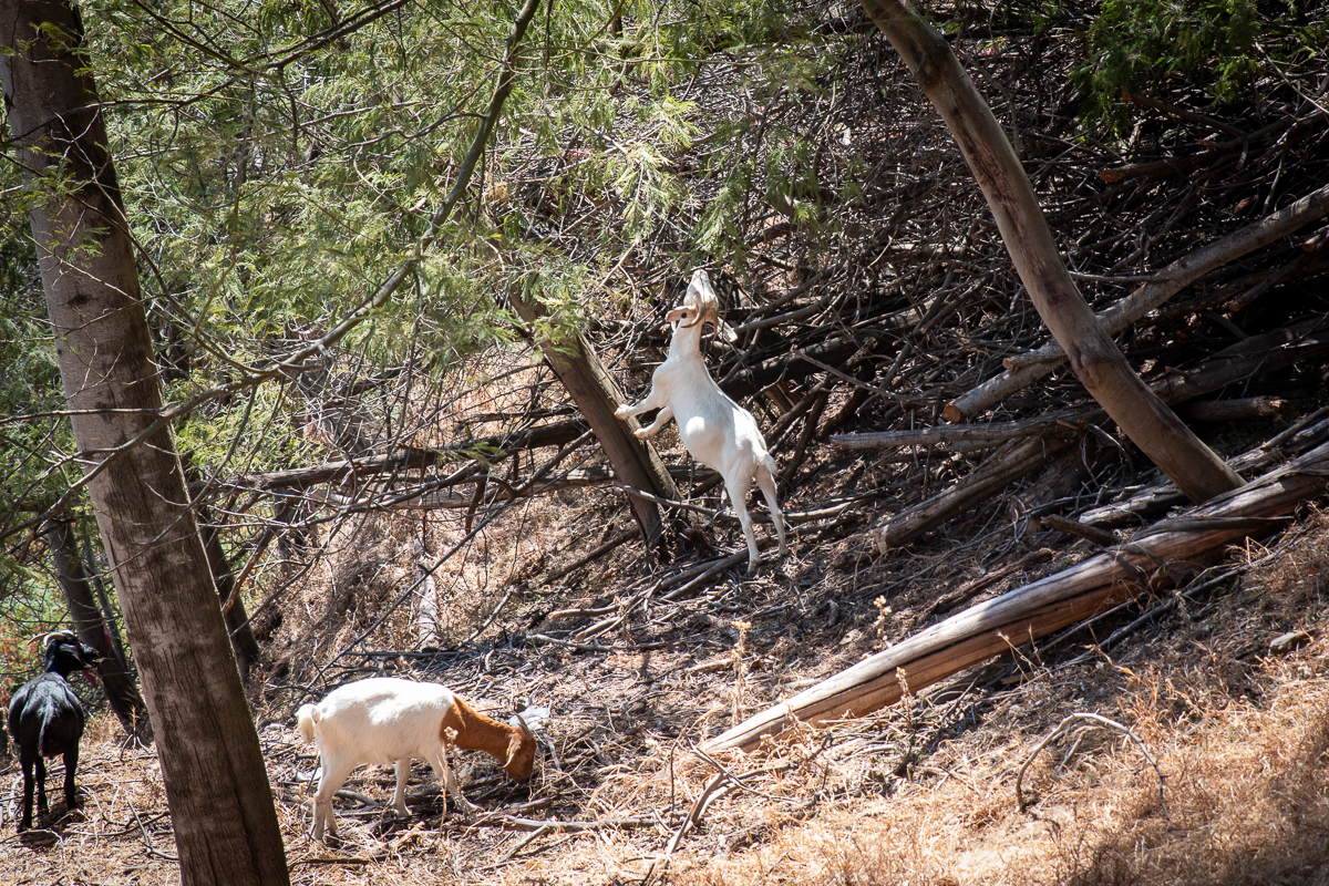 Nature’s lawn mowers are back at it, clearing dry grass from the hillside above the Corporation Yard off Moraga Ave.