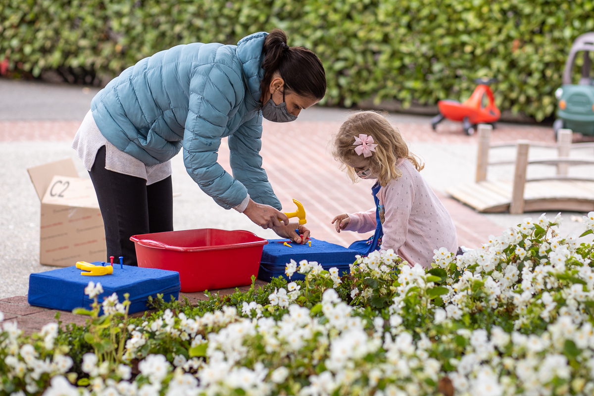 Small children (and their parents) rejoiced when the Piedmont Recreation Department launched its outdoor preschool program this week. The children each had individual baskets of play items and wore masks as much as possible.