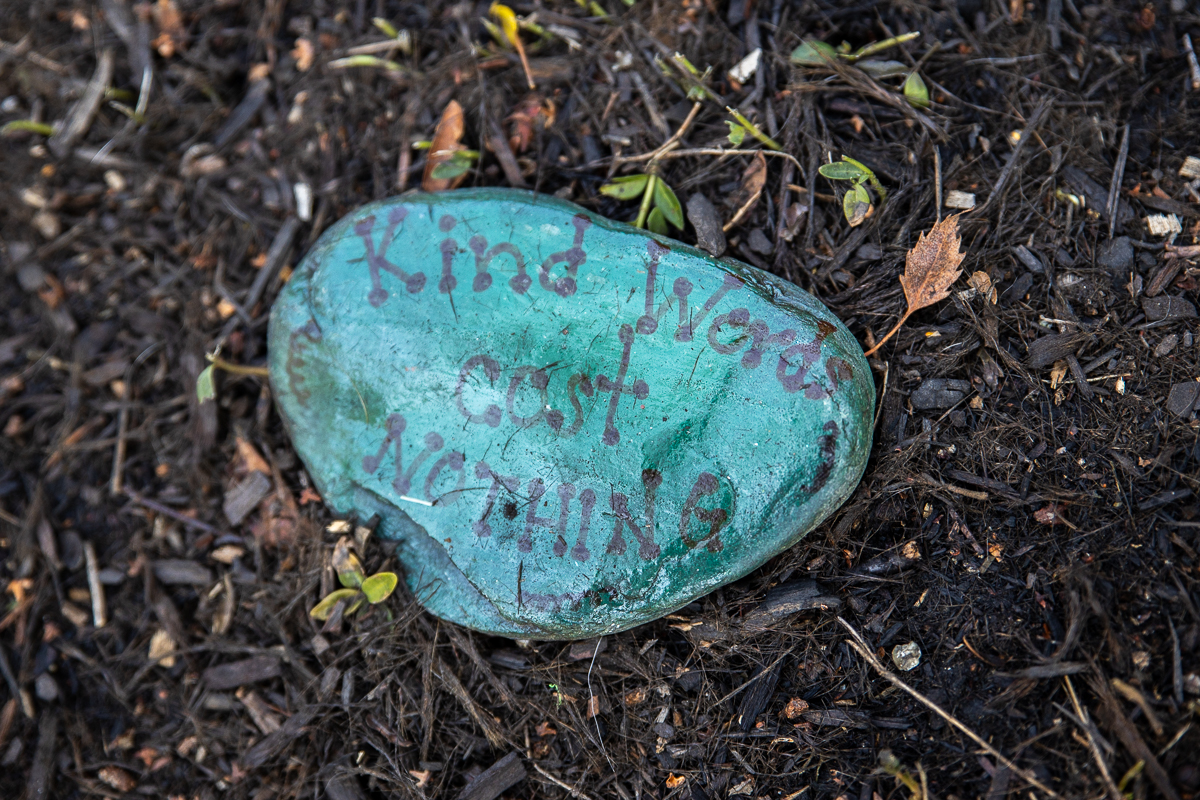 A series of painted stones have mysteriously appeared along the Hall Fenway walkway that cuts between Wildwood and Crocker Avenues, charming those who spot them.