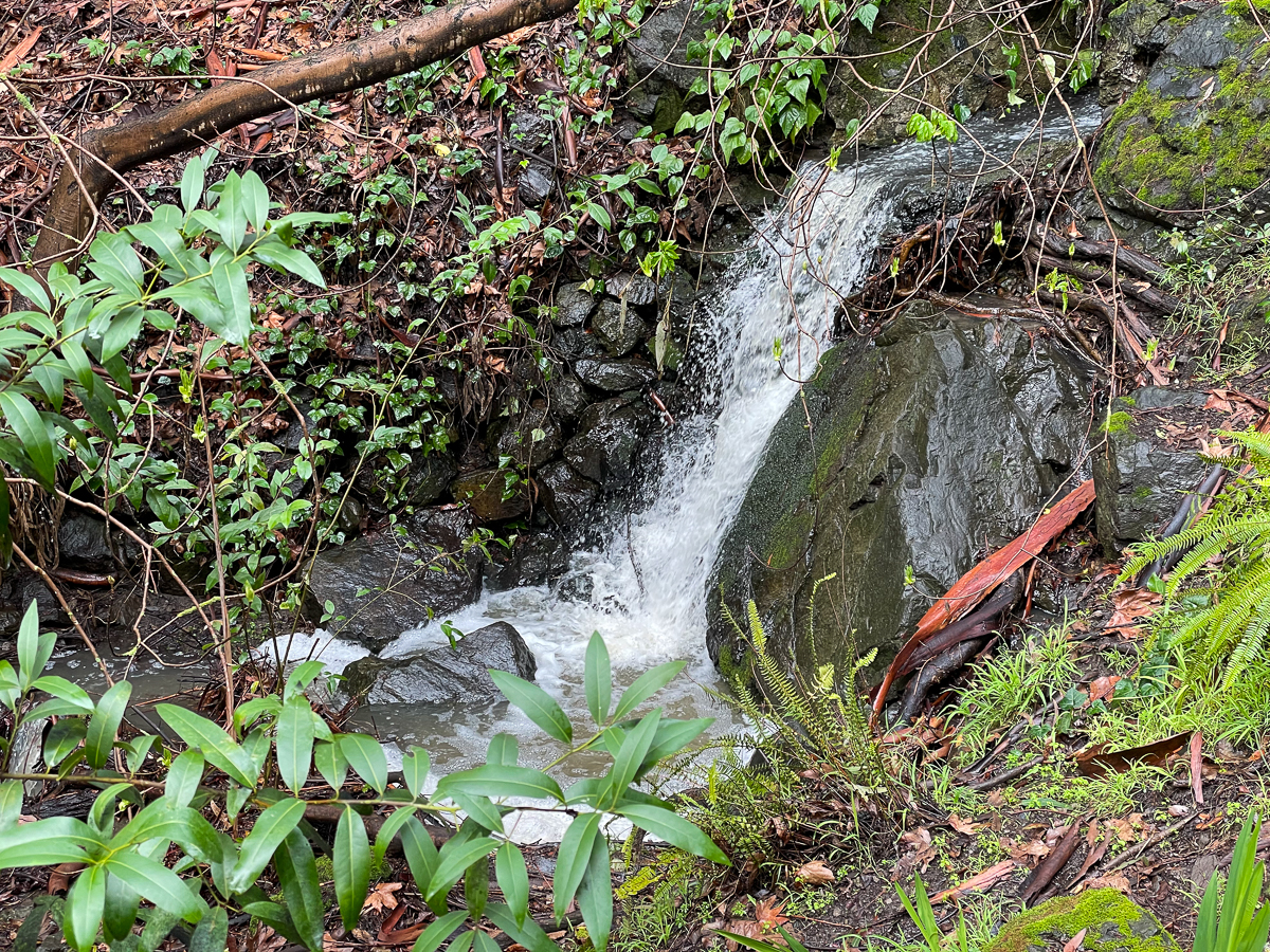 Although strong winds caused some minor damage locally, wet weather this week revived Bushy Dell Creek in Piedmont Park and brought some much needed moisture to city parks and local gardens. Oakland Airport received 1.69″ of rain from the atmospheric river that swept over the Bay Area Tuesday through Friday, according to the Bay Area National Weather Service.