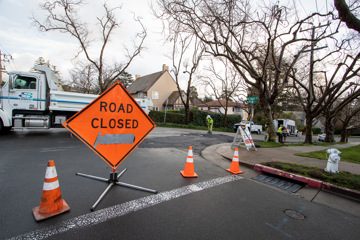 EBMUD closed La Salle between Indian and Crocker while they put in 16 – 17’ feet of pipe and a new gate valve, according to Kyle Carlisle of EBMUD. He added that local affected residents “were really patient”.