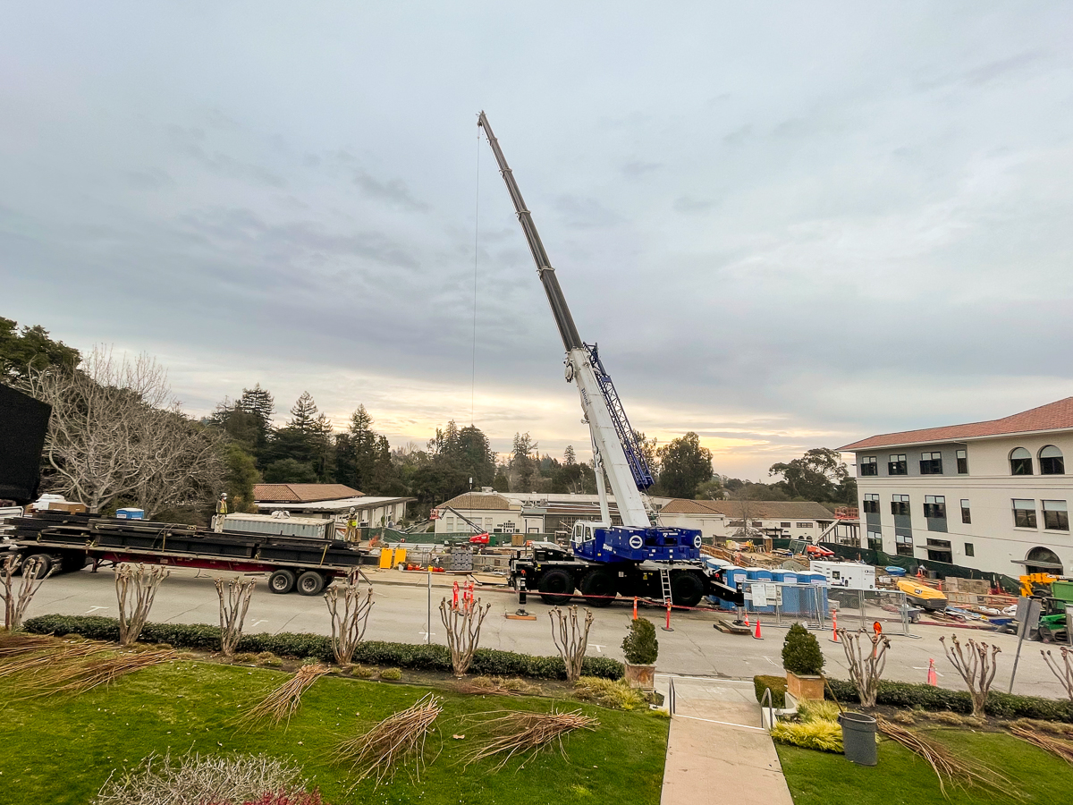 The crane is visible from Piedmont Court