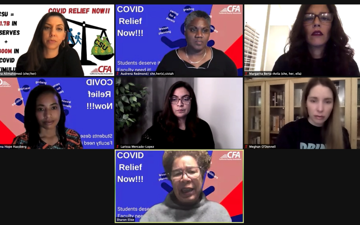 These faculty, who are mostly women, say the CSU system should provide teaching assistants or paid leave to ease their load, which includes educating their children who are learning from home or caring for elderly family members.