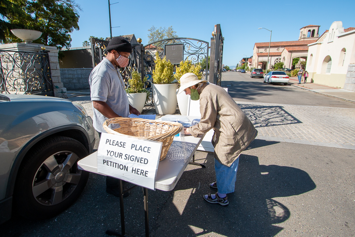Now, at long last, with lots of detail to explain their stance, Mountain View is piloting a partial reopening — two days a week (compared with their decades long practice of 7 days/week). And unlike the the gates-wide-open of yore, visitors were greeted by a guard who asked for signatures to petition Oakland city planning and Mayor Libby Schaaf to “help resolve the City’s actions against the Cemetery’s repair and landslide prevention of Hill 500.”