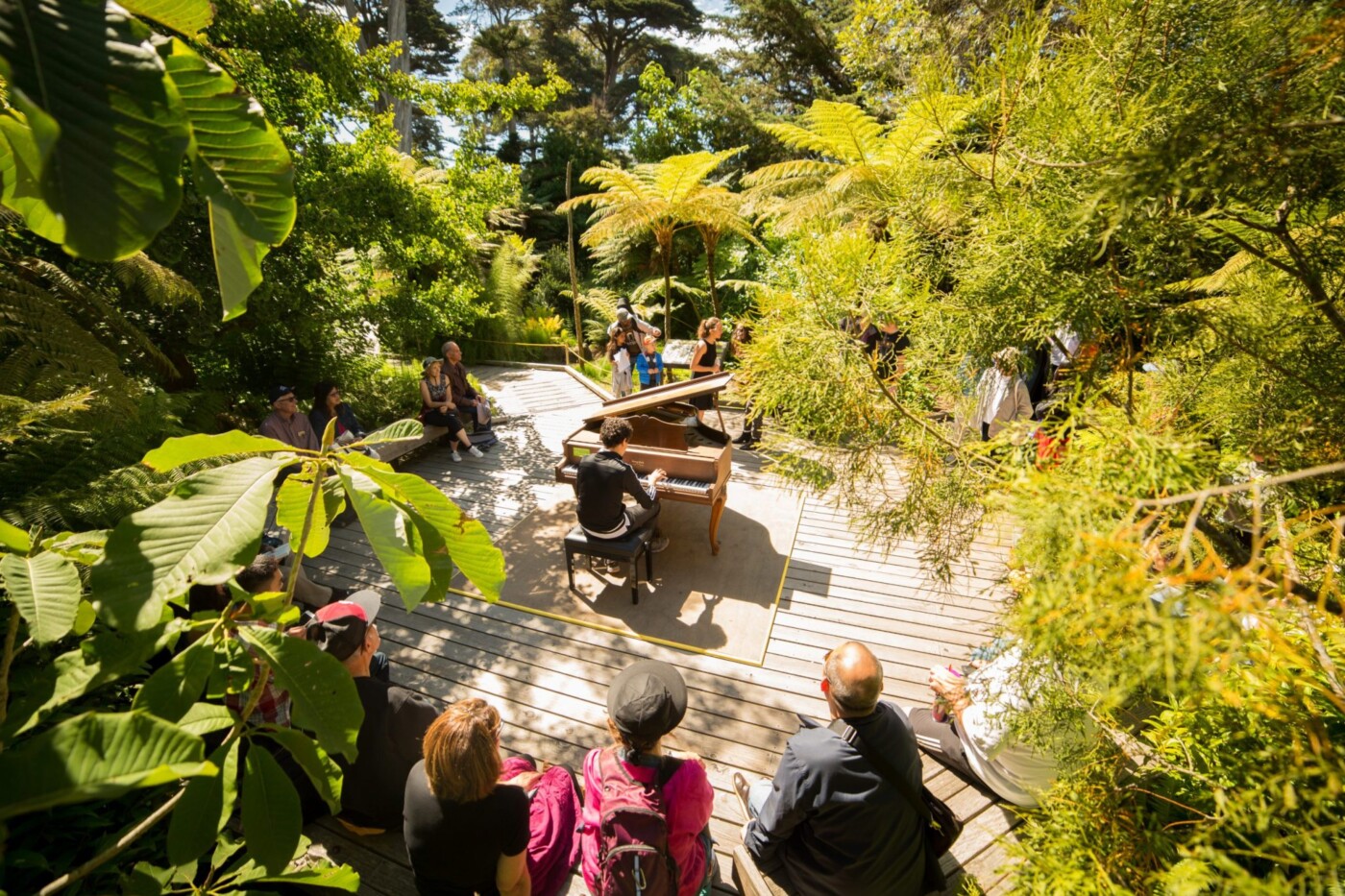During Flower Piano, amateurs and professionals like play among San Francisco Botanical Garden’s lush flora. (Photo courtesy San Francisco Botanical Garden)