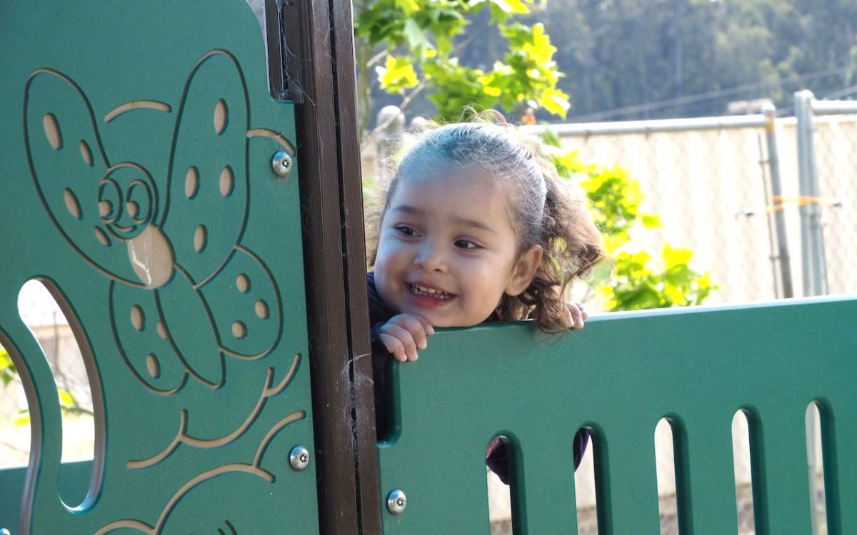 Esmeralda Acosta enjoys the play equipment at the day care center for the children of migrant workers in Watsonville.