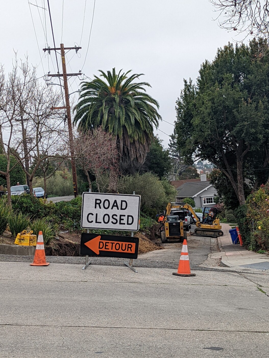 Construction equipment at the site of a new retaining wall on San Carlos Ave, Jan. 18, 2022.