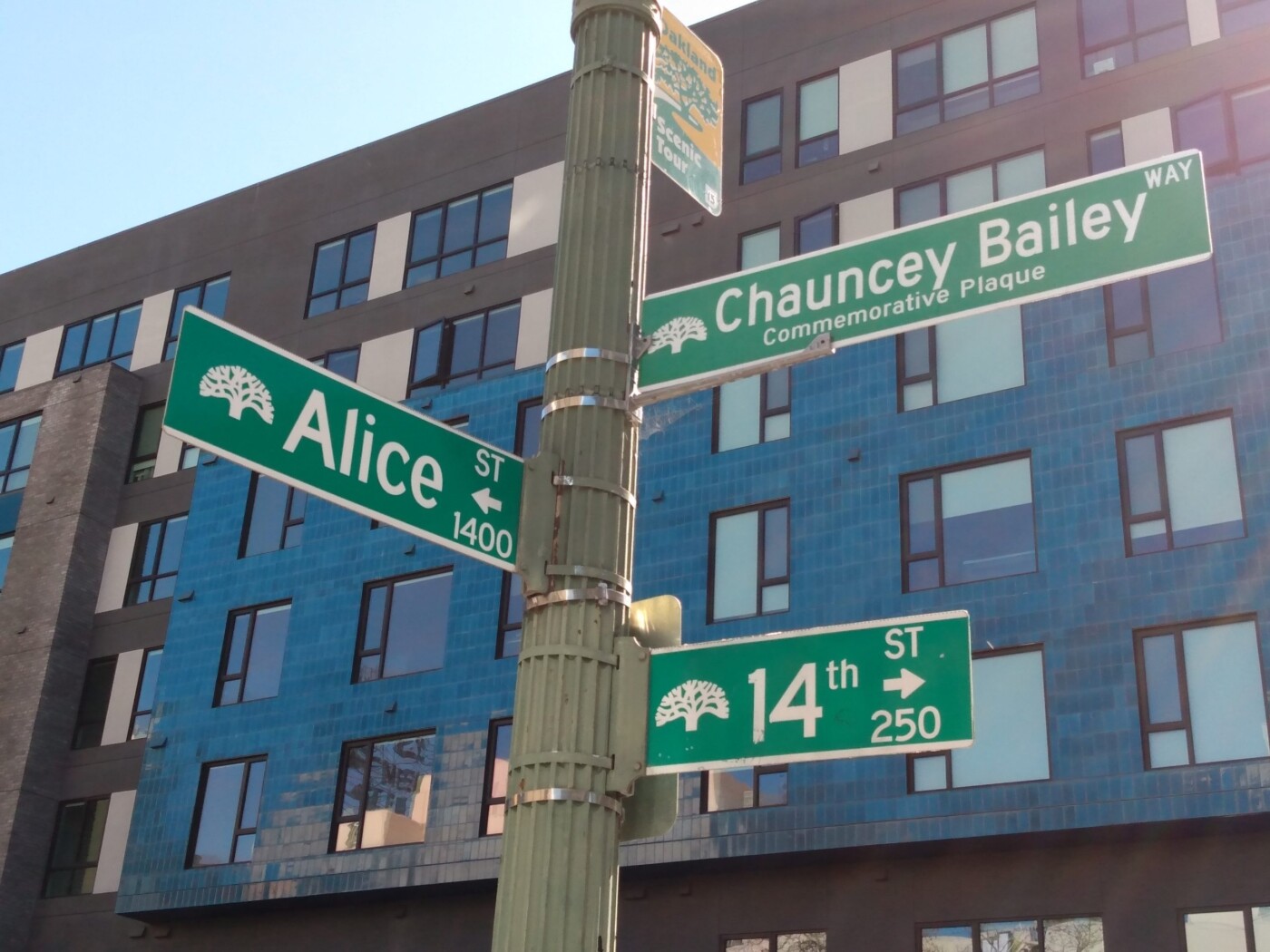 At 14th and Alice streets at noon, officials will unveil Chauncey Bailey Way, which will stretch from Broadway to Lakeside Drive in downtown Oakland.