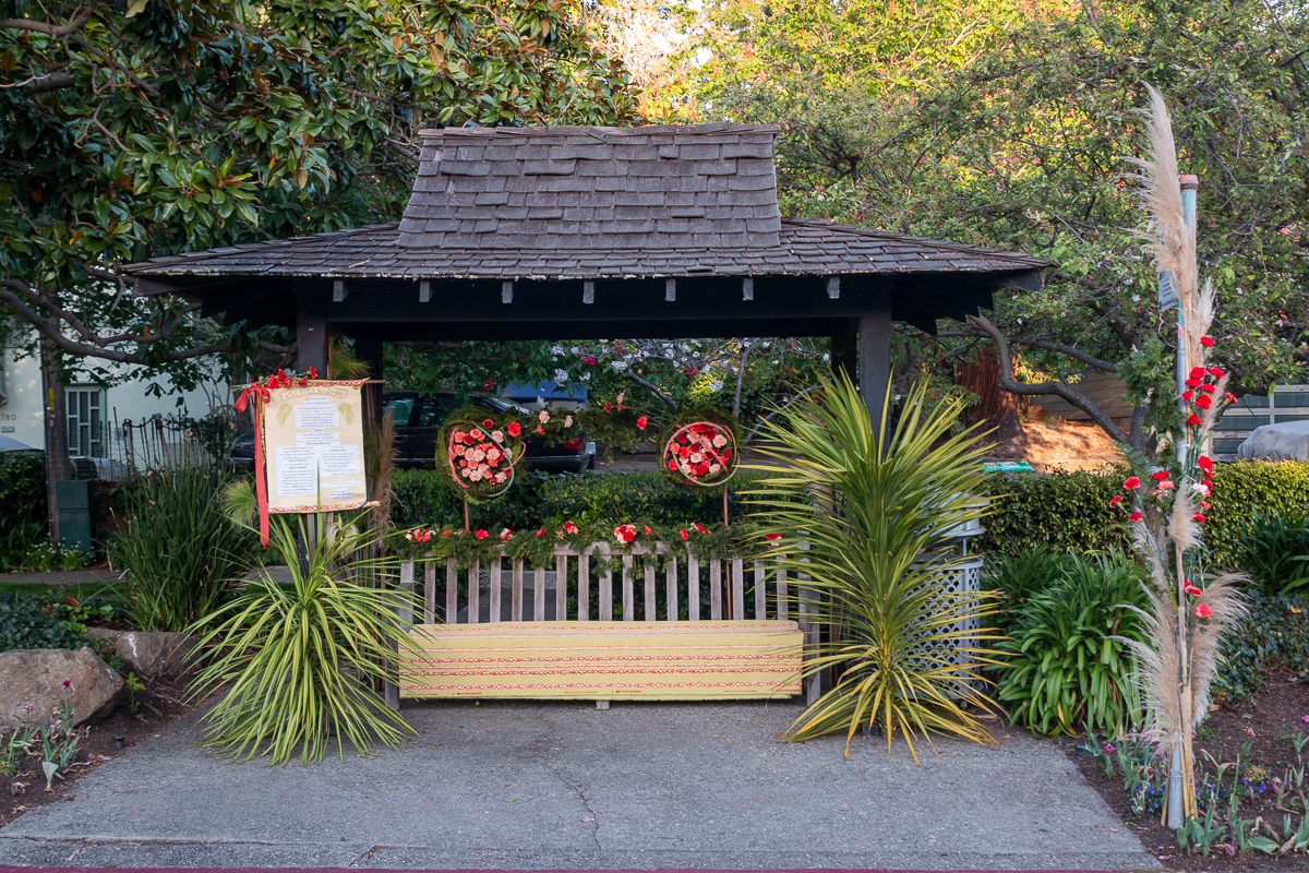 At the bus stop on Highland Ave between Sierra and Sheridan you’ll find an impromptu floral “photo” booth, fashioned like a throne and embellished with blooms. Crowns are provided — and a royal proclamation, signed by “Tom Foolery, Chairman of the Piedmont April Fools,” invites passersby to pause, snap a selfie and enjoy the scene while they await the Royal Bus. Installation by Patty Reed, Lisa Tuck and Jan Zovickian.