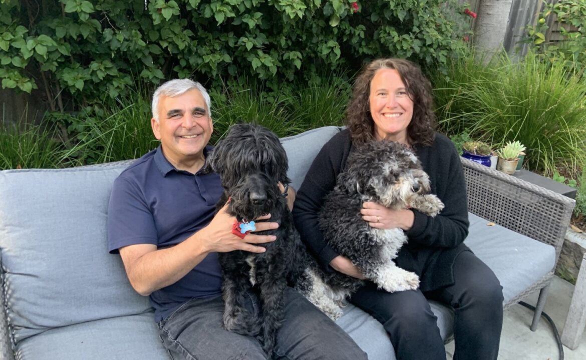 Good dogs Freddy (left) and Harry with Rohan Kalbag and Shannon Rogers