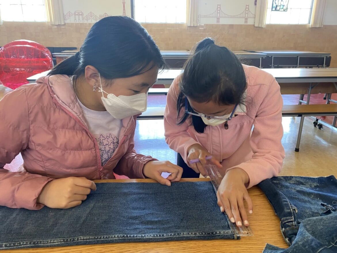 On a weekday afternoon in July, dozens of donated pairs of Levi’s jeans lay scattered across cafeteria tables, waiting to be repurposed into tote bags. The young designers, students at a summer program held at Dr. Martin Luther King Jr. Academic Middle School in San Francisco, pile in and begin searching for the denim garments labeled with their names.