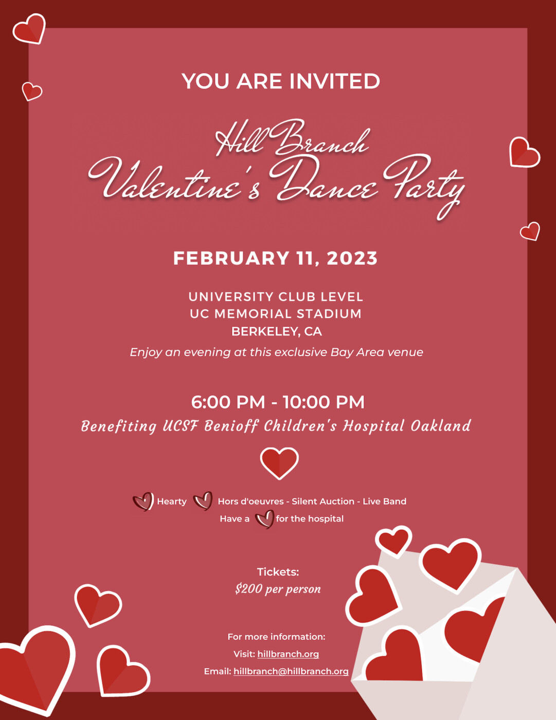 Tickets are $200 per person. To register and for more information please go to www.hillbranch.org.