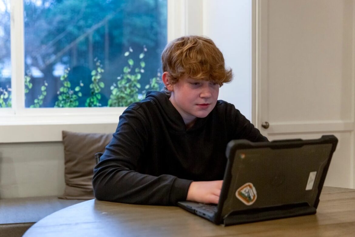 Dominic Levy does homework at his home in Clayton on Jan. 29, 2023. Photo by Shelby Knowles for CalMatters