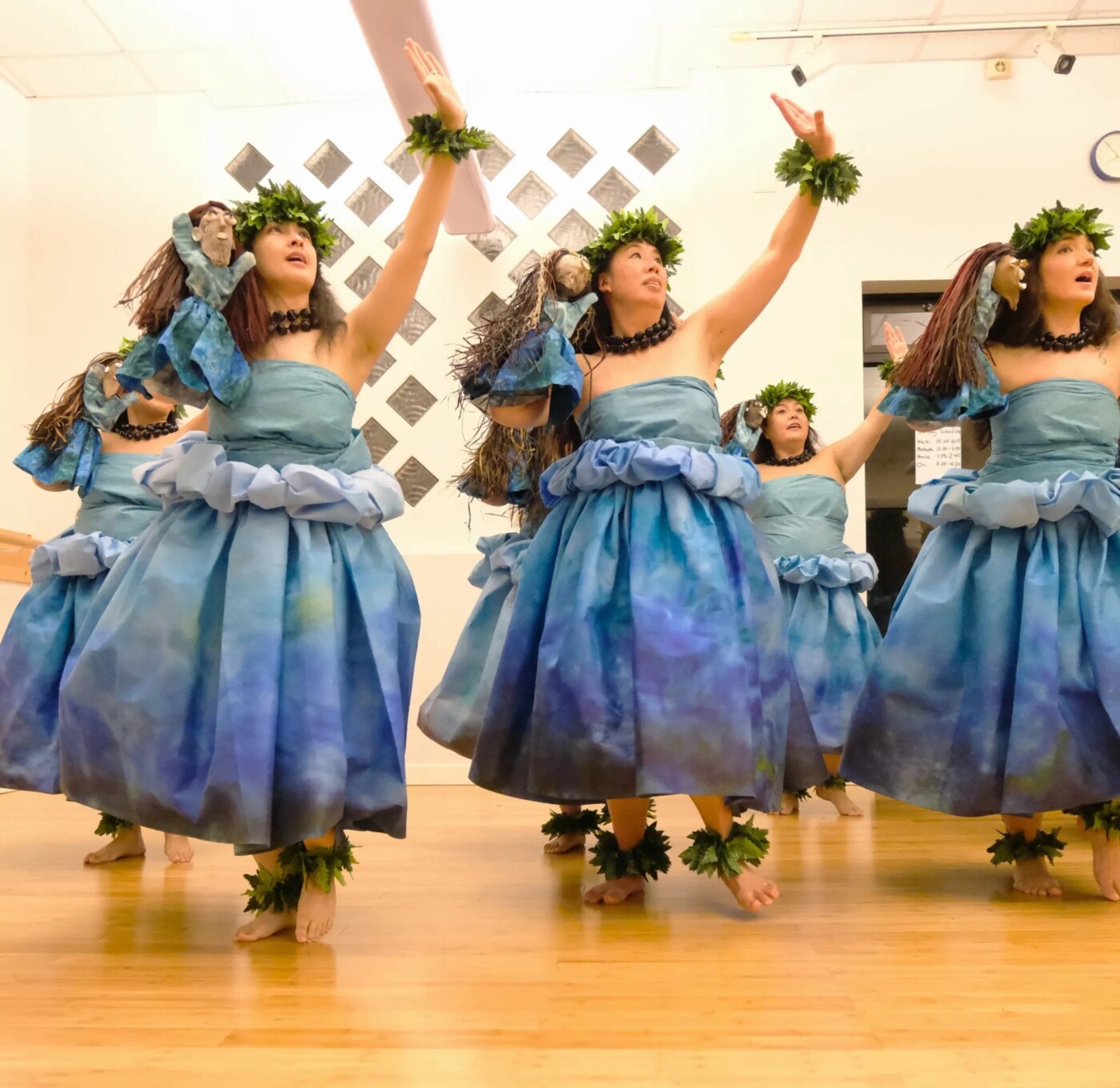 Two Hawaiian dance masters — Kumu Hula Ki’i Mauli Ola Cook and Kumu Hula Maile Loo, both artists in the tradition of legendary Kumu Nona Beamer — joined the rehearsal via Zoom from Hawaii, speaking the production’s narrative parts and offering notes as Uchiyama and her dancers fine-tuned the production. Uchiyama later explained that the Hawaiian kumus have lent their support and advice to the project since its inception.