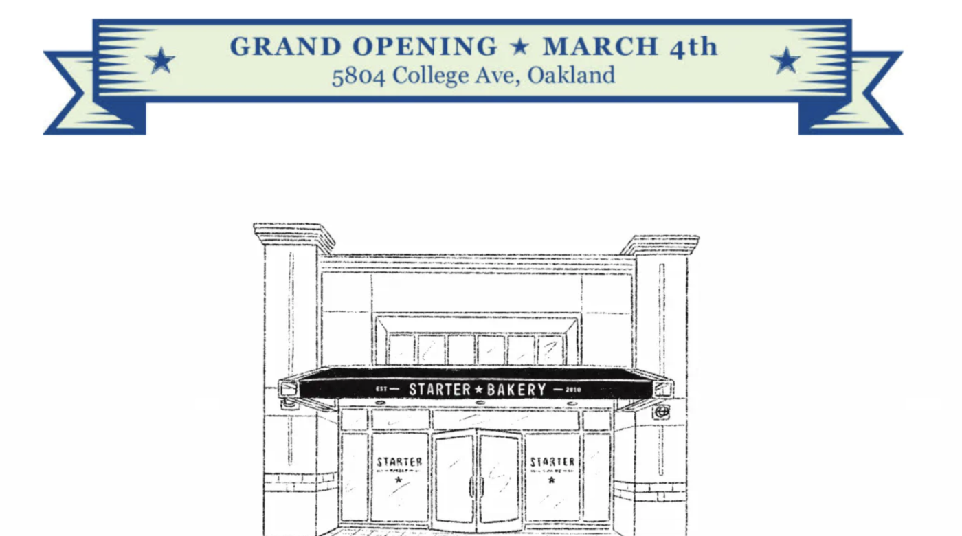 Fans of Starter Bakery’s array of delicious pastries can now find their favorites at the bakery’s first storefront location, opening this Saturday, March 4, at 5804 College Avenue in the former Jules Thin Crust pizza location. (We’re partial to the melt-in-your-mouth kouign-amanns but pretty much every pastry on their menu is delicious.)
