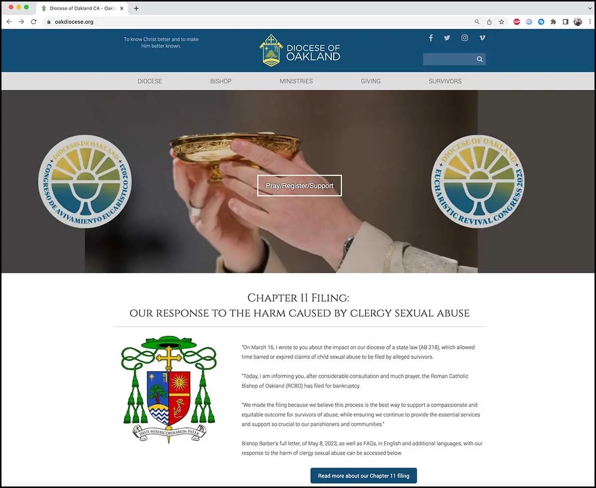 In March, the diocese announced it was considering bankruptcy, just days after the Diocese of Santa Rosa filed for Chapter 11 for similar reasons.