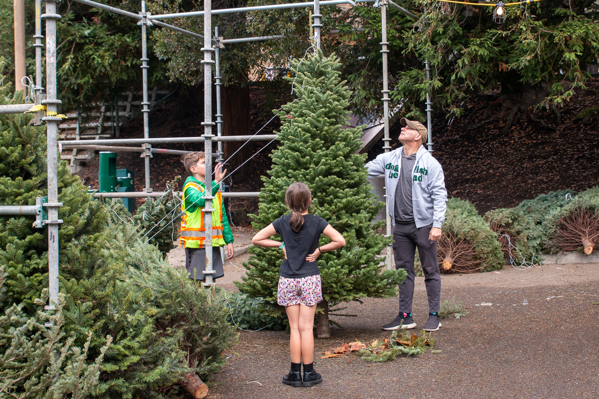 Tis the season … for the Coaches Field parking lot to be transformed into a bustling scene of evergreen. For more than 50 years Piedmont Scouts have sold holiday trees — this year silver tips, Noble firs and Douglas firs — plus an assortment of garlands, wreaths, and other holiday greenery to local residents. Cub Scouts, Scouts, Venturing Crew members and adult volunteers all work together on the lot to help buyers select the tree, cut it as necessary, and help load and/or deliver the tree. Funds raised via this annual tradition support activities of the local council, Piedmont BSA.