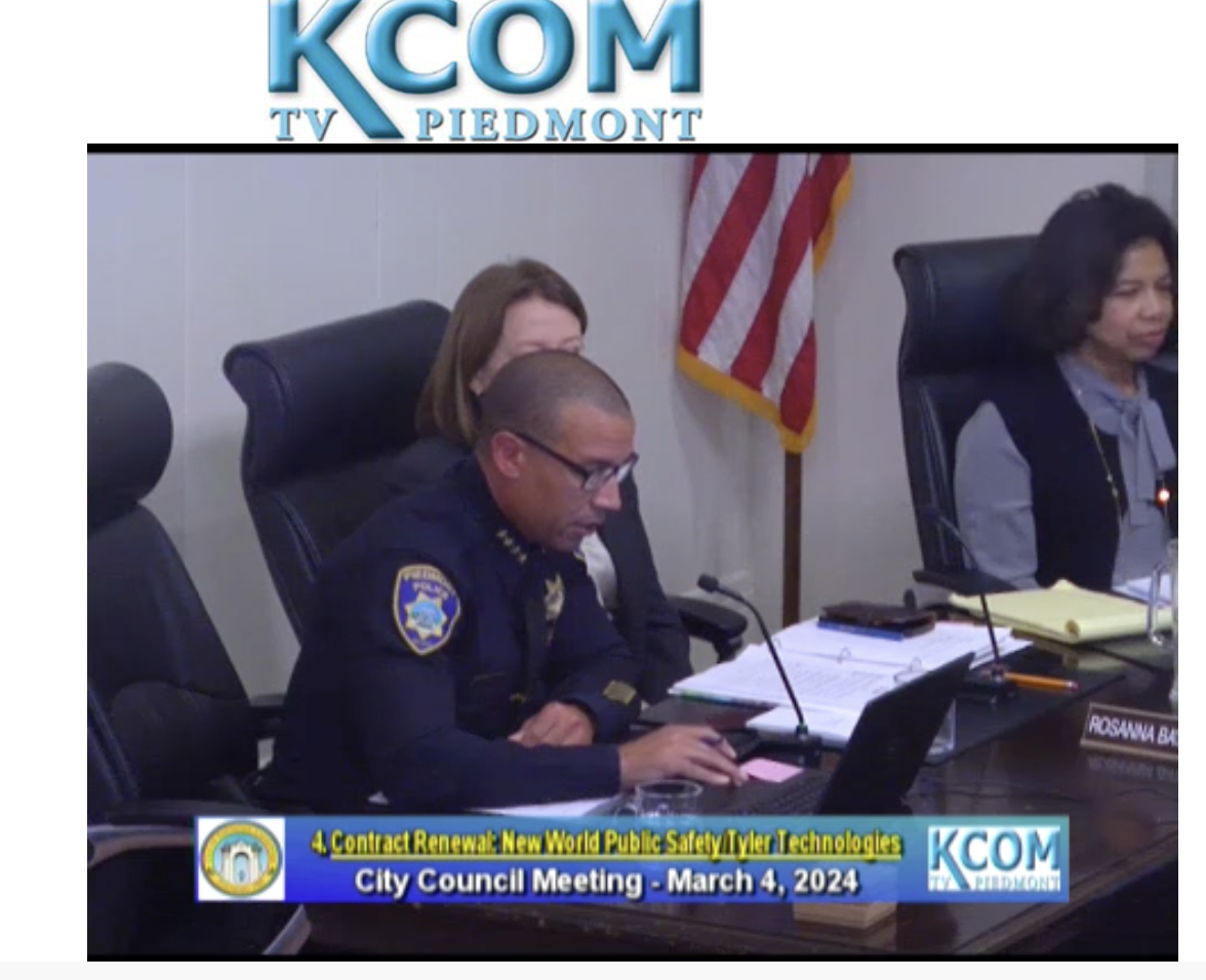 The majority of the meeting was spent discussing the Piedmont Police Department’s contract with Tyler Technologies, specifically a new application launched March 1 called Citizen Connect that provides near real-time incident updates on a digital map.