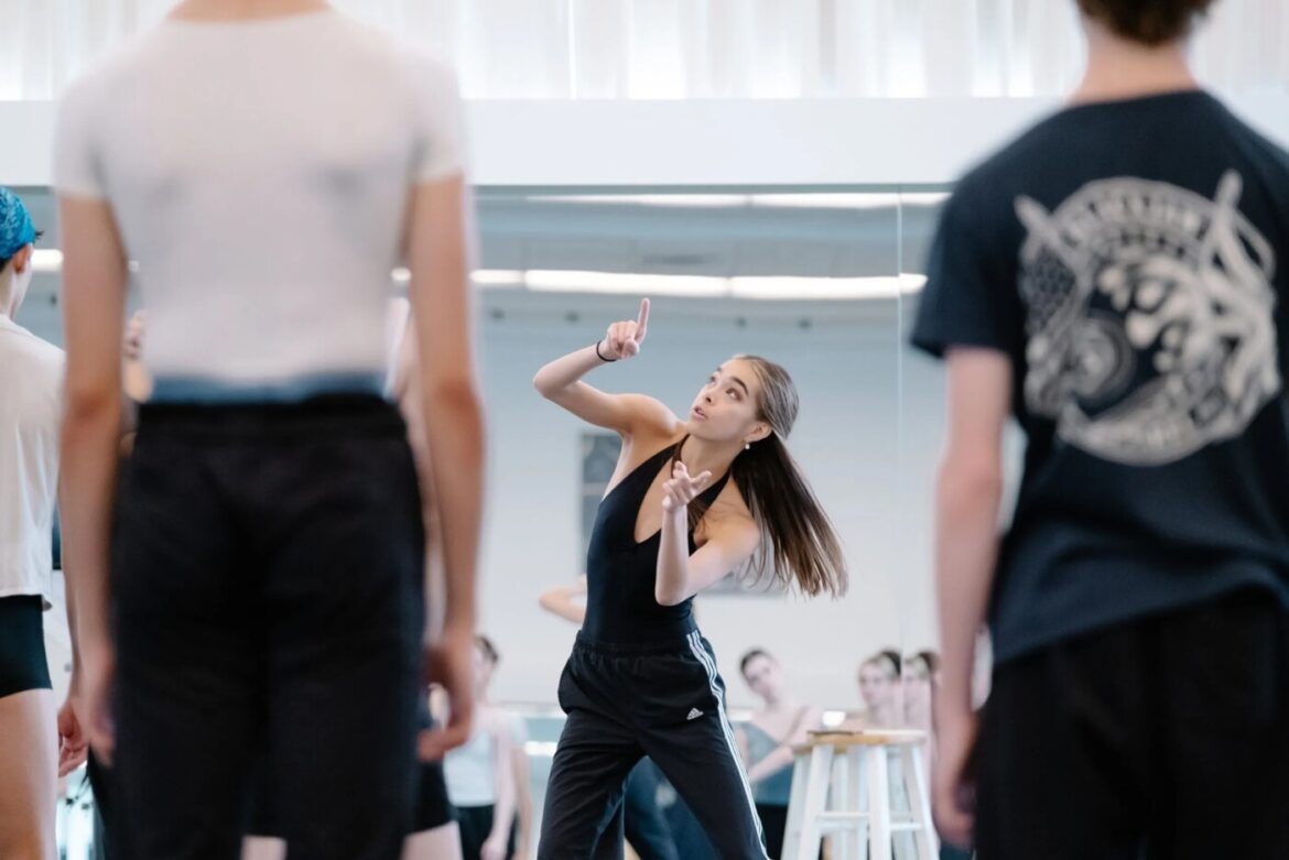 “It’s been a super-busy season for Pemberley as a dancer; she had to work around the school schedule, and finding time to work with the students was challenging,” Holmes says. “Now that the company is finished for the season, we’re doubling down and having her at the studio every day so she can work with the dancers. She had already finished the piece, but there’s always more to fine-tune, fix and adapt.”