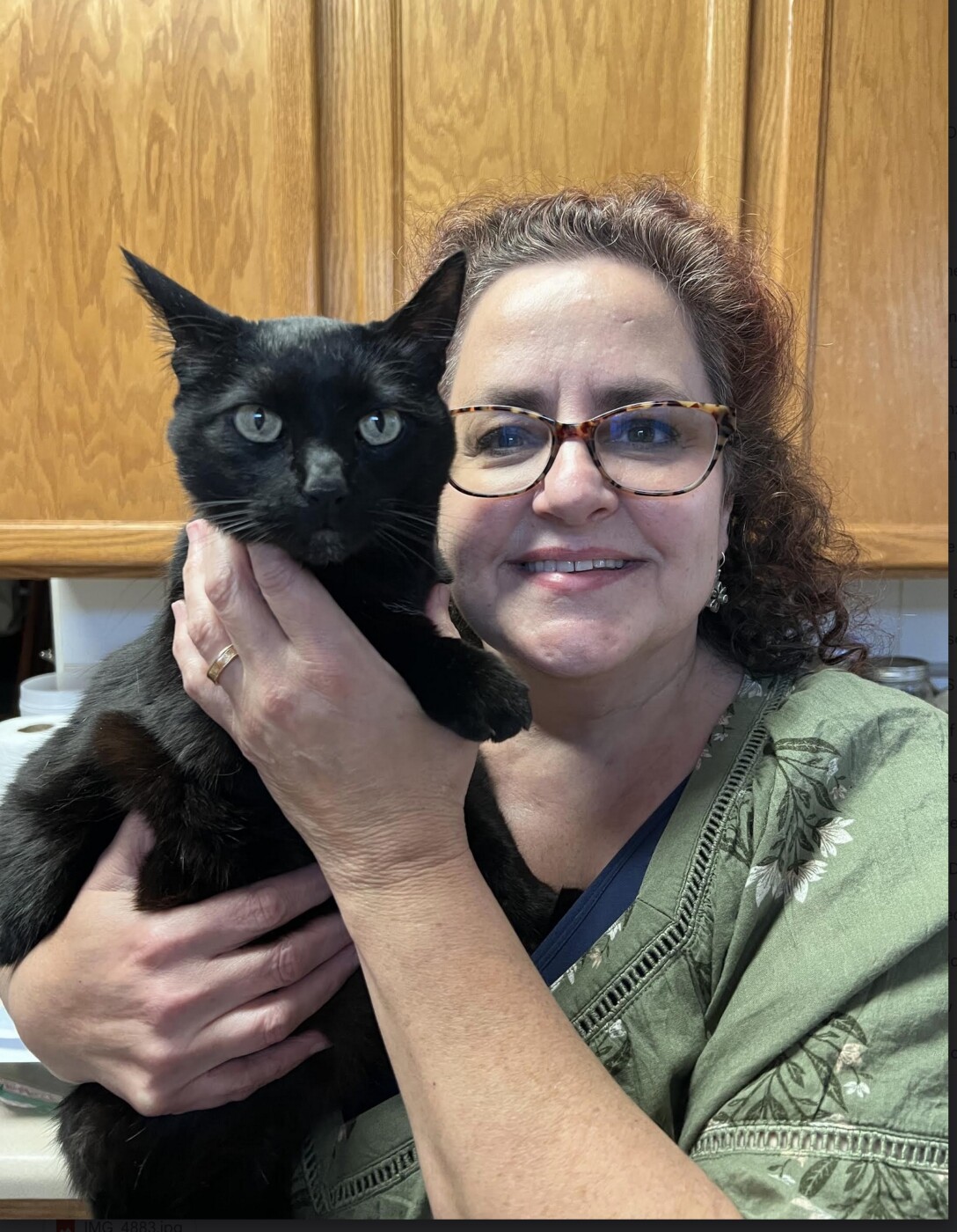 Interesting facts: She’s a silhouette artist — black cats are good at that — she knows she looks great backlit, and loves to pose on windowsills with sheer curtains so she looks especially elegant.
