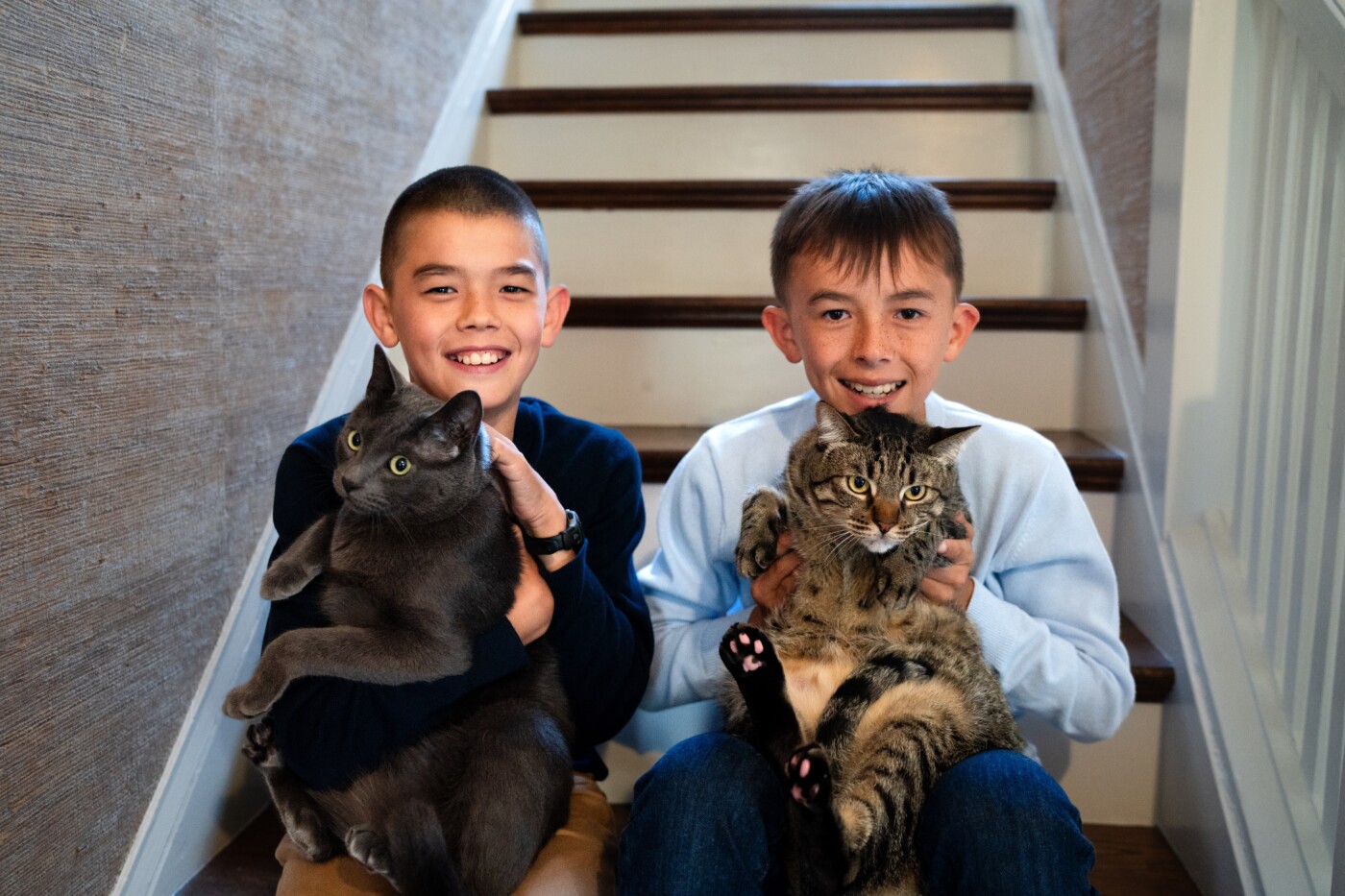 Adoption Story: Vlad and Shadow are siblings who were born in a barn on a friend’s ranch near Stockton. We picked them out of a huge litter of tiny kittens during COVID, and they became those cats that jumped into your lap and walked across the screen in every Zoom call.