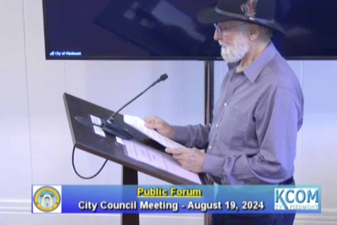 Five members of a far-right election activist group called United Sovereign Americans made an unexpected appearance at Monday night’s City Council meeting. In an orchestrated move, the speakers, none of whom live in Piedmont, took turns using their three minutes of public comment time to claim they had evidence of “serious issues” and “massive inaccuracies” in the 2022 election and asked the council to sign on to a raft of provisions for the November 2024 elections that ranged from proof of citizenship to vote, handmarked ballots, to publicly verifiable voter rolls.