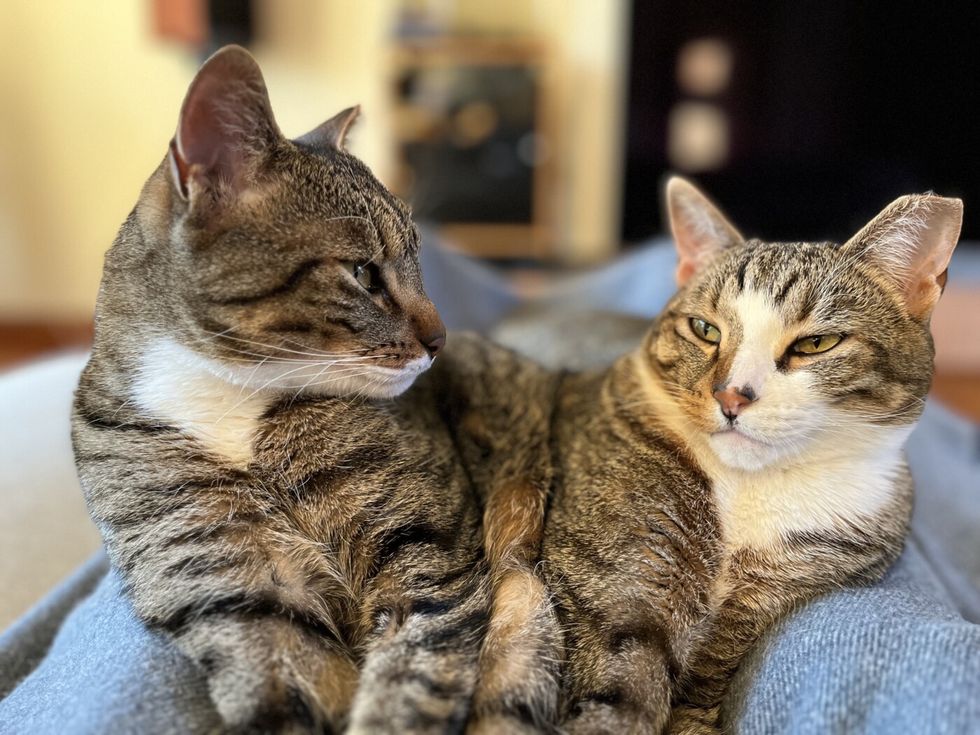 Favorite napping spot: Curled up together on my lap on top of their favorite blanket.