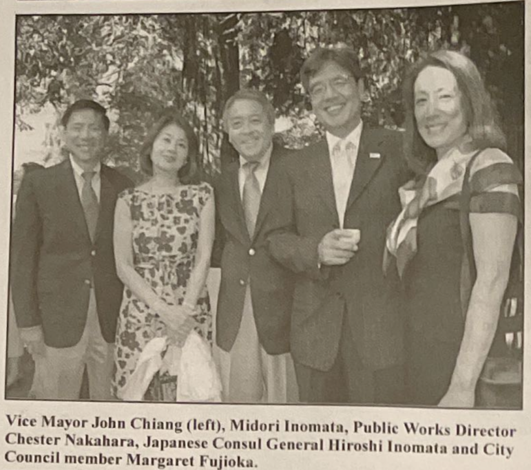 By 2011 the Tea House was showing signs of wear and tear. Both the decking and the Tea House needed repair, and some of the landscaping had deteriorated. At that time, former Mayor Valerie Matzger was President of PBF, and she launched a campaign to restore the Tea House and replace the decking and surrounding garden. In addition to the current decking that anchors the Tea House, several lovely benches were offered as tributary opportunities, providing a significant portion of the funding for the project. Contributions from many Piedmont families were recognized with a brass plaque near the entrance to the garden. At the impetus of Mayor Matzger, and following a unanimous vote of the City Council, the name “Jean Brown Wolfe Tea Garden” is inscribed at the top of the plaque to honor her more than 50 years of service to the City. Wolfe had passed away in February of 2010. On September 27, 2011, the newly restored Tea House and the Jean Brown Wolfe Tea Garden were formally dedicated. PBF President Valerie Matzger emceed the celebration, with a diverse crowd in attendance, including Vice Mayor John Chang, Councilmember Margaret Fujioka, Public Works Director Chester Nakahara and Japanese Consul General Hiroshi Inomata and his wife Midori. Consul Inomata spoke to the crowd and congratulated the City on the authenticity of the Tea House and Garden. Many members of Wolfe’s family were in attendance, including her son Cameron who stated that “the volunteerism of its citizens is the key to the wonderful character of Piedmont.” Matzger and Wolfe continue to be valued advisors to PBF to this day.