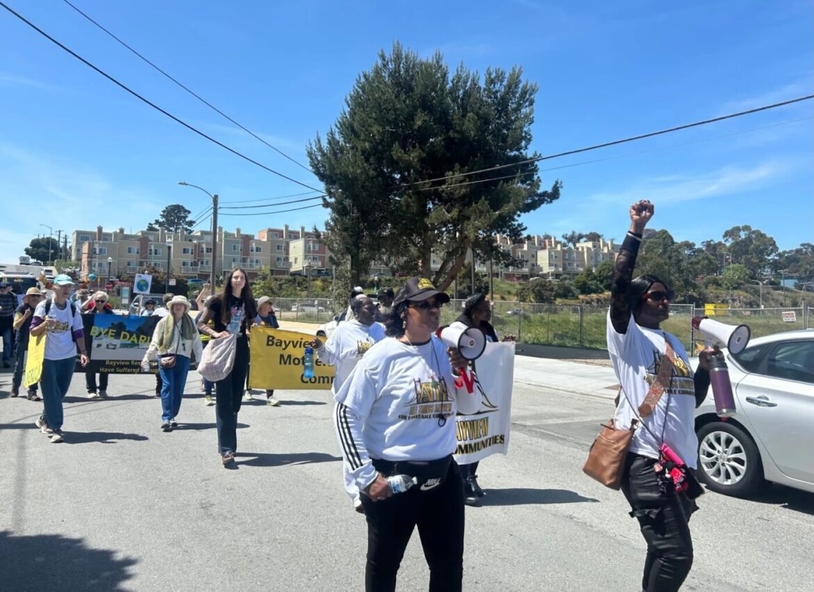 Members of environmental justice organizations like Greenaction for Health and Environmental Justice, All Things Bayview, and 1,000 Grandmothers for Future Generations marched nearly 2 miles from Bayview Plaza to the Hunters Point Naval Shipyard on Earth Day to raise awareness of a decades-long battle to remove hazardous chemicals that contaminate the soil, groundwater, air, surface water and sediments at the former naval facility.