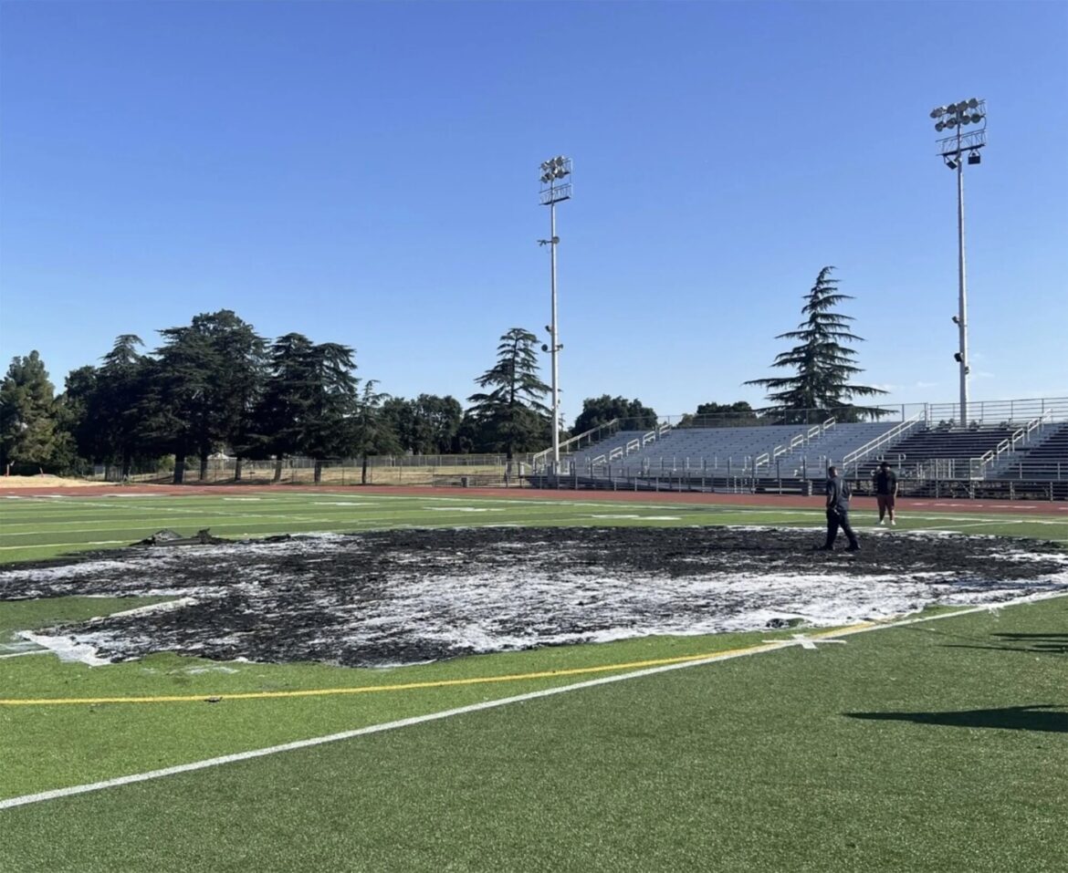 Concord police and Contra Costa County Fire Protection District crews responded Sunday morning to a report of a fire on the newly installed synthetic turf field at the school located at 2450 Grant St.