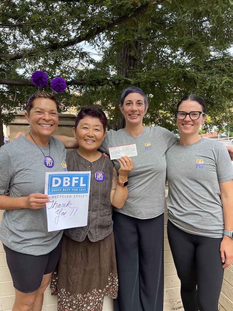 In honor of the Giving Campaign launch and PEF’s 50th anniversary, Dress Best For Less granted the Piedmont Education Foundation $50,000 on Sept. 16. DBFL board president Nagisa Yamamoto presented the check to Giving Campaign co-chairs Kim Hunter and Catie Osborn, and PEF executive director Heather Frank. This is the most recent installment of Dress Best for Less’ longtime collaboration with PEF