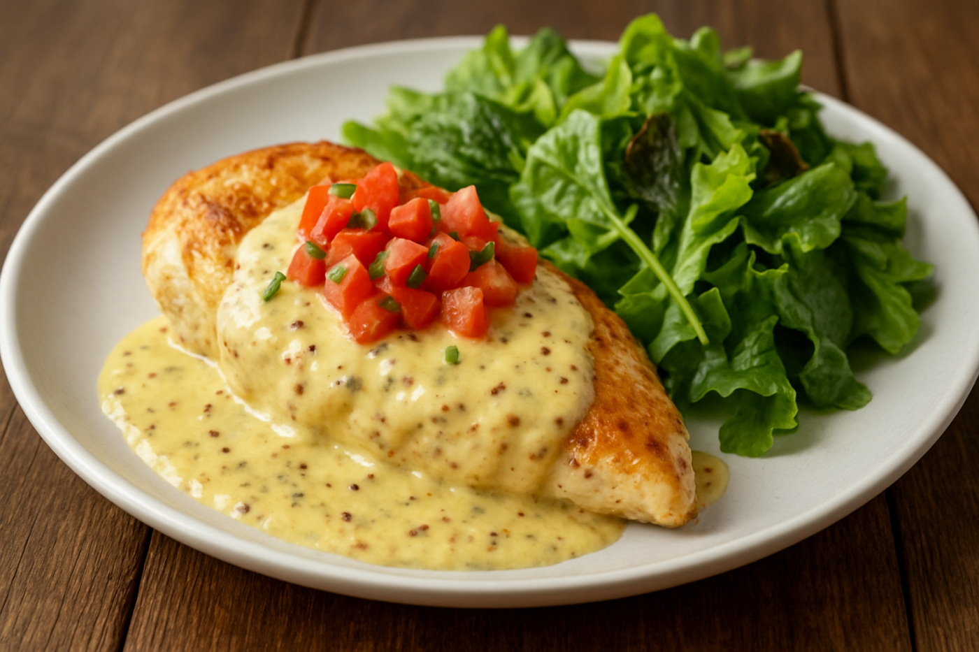 - Plate chicken and put extra sauce on top. Sprinkle with chopped tomatoes.