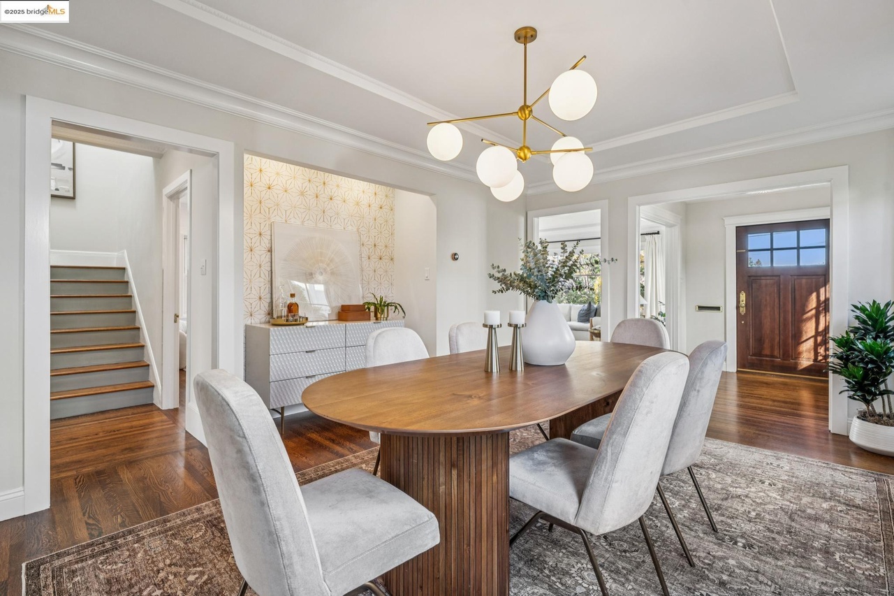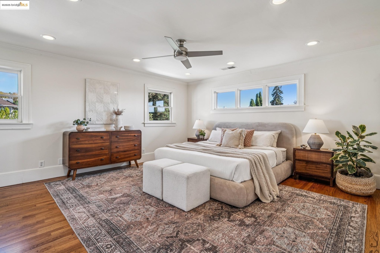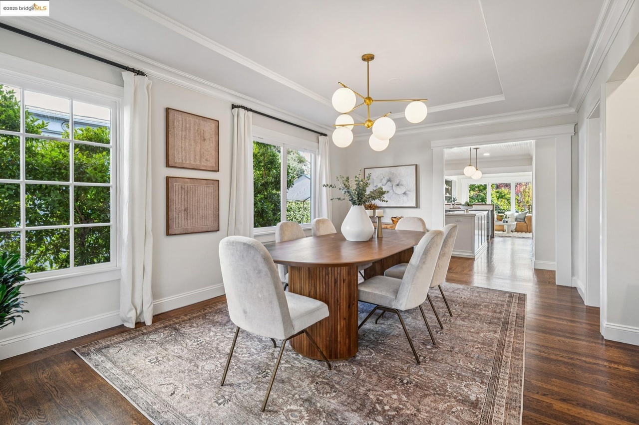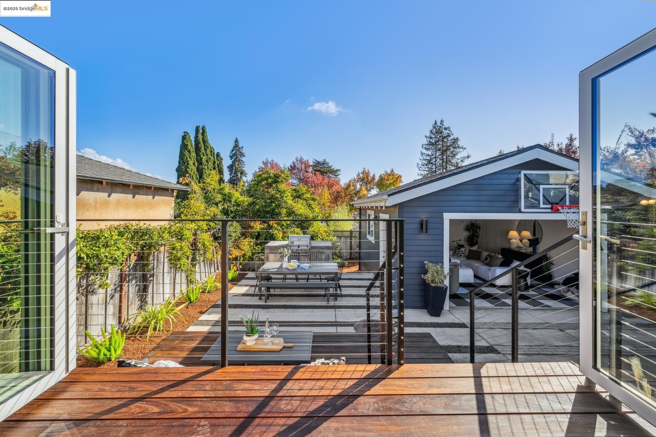 The action happens in the family room, where you can enjoy our beautiful East Bay weather by opening the panoramic doors wide to the back deck, allowing the party to flow outside. Rounding out this floor are two bedrooms, a sleek hall bath, and a handy powder room. Head upstairs to see the primary bedroom with en-suite bath, a large second bedroom, and a separate cheerful office space perfect for the CEO of the house. The backyard is your go-to spot for entertaining with a built-in BBQ, flexible finished garage, dining patio, basketball hoop, and low-maintenance landscaping. Move right in and enjoy the owned solar, Piedmont’s top-notch public schools, responsive city services, new aquatic center, and vibrant community!