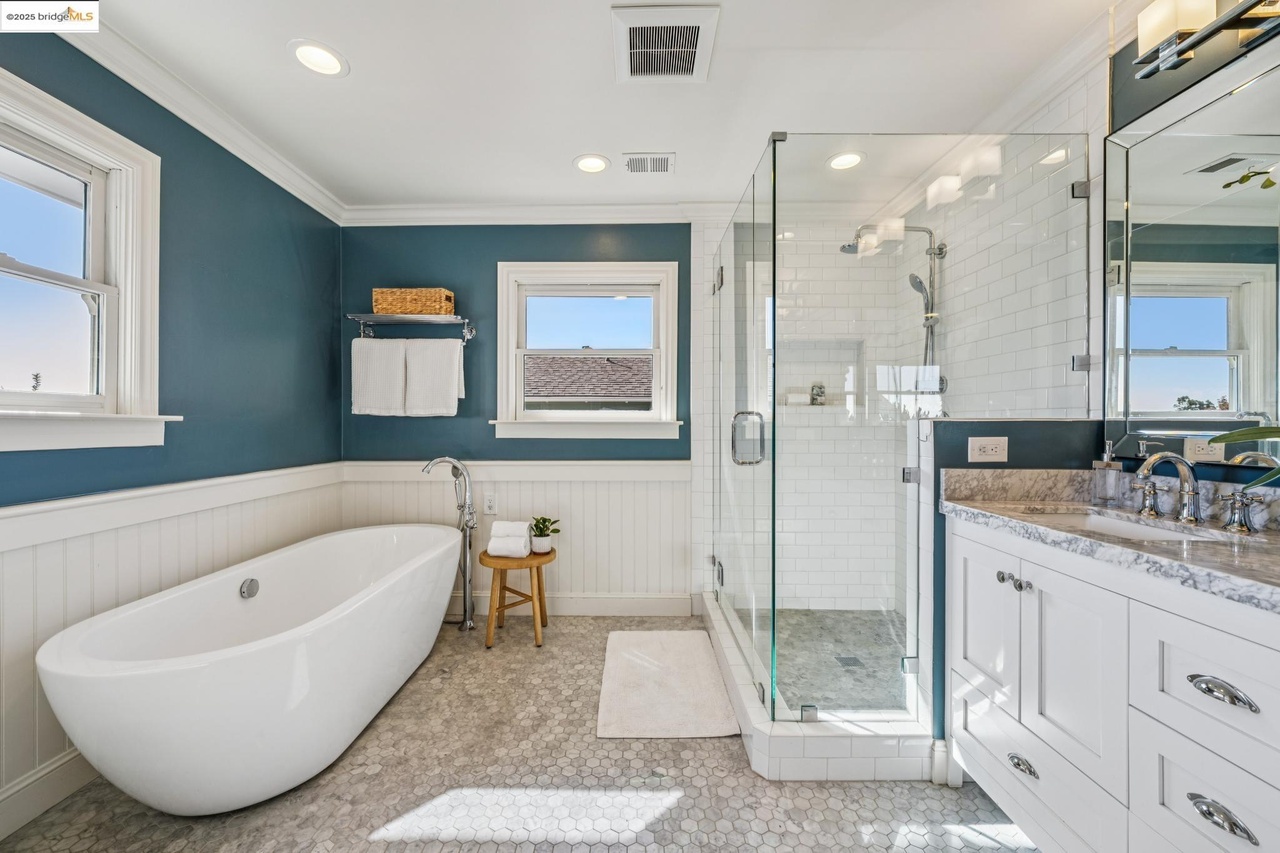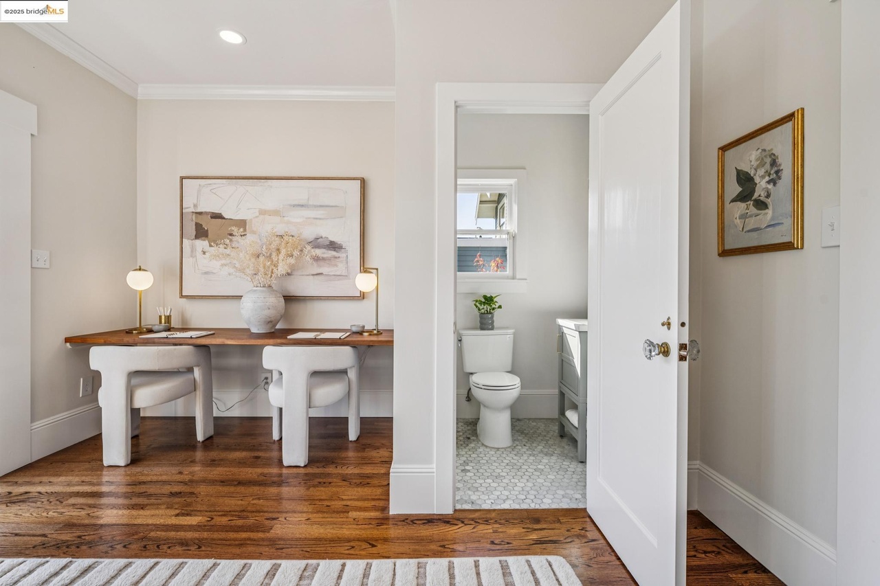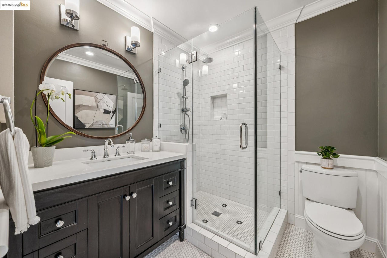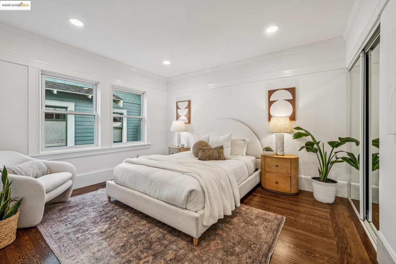 The action happens in the family room, where you can enjoy our beautiful East Bay weather by opening the panoramic doors wide to the back deck, allowing the party to flow outside. Rounding out this floor are two bedrooms, a sleek hall bath, and a handy powder room. Head upstairs to see the primary bedroom with en-suite bath, a large second bedroom, and a separate cheerful office space perfect for the CEO of the house. The backyard is your go-to spot for entertaining with a built-in BBQ, flexible finished garage, dining patio, basketball hoop, and low-maintenance landscaping. Move right in and enjoy the owned solar, Piedmont’s top-notch public schools, responsive city services, new aquatic center, and vibrant community!