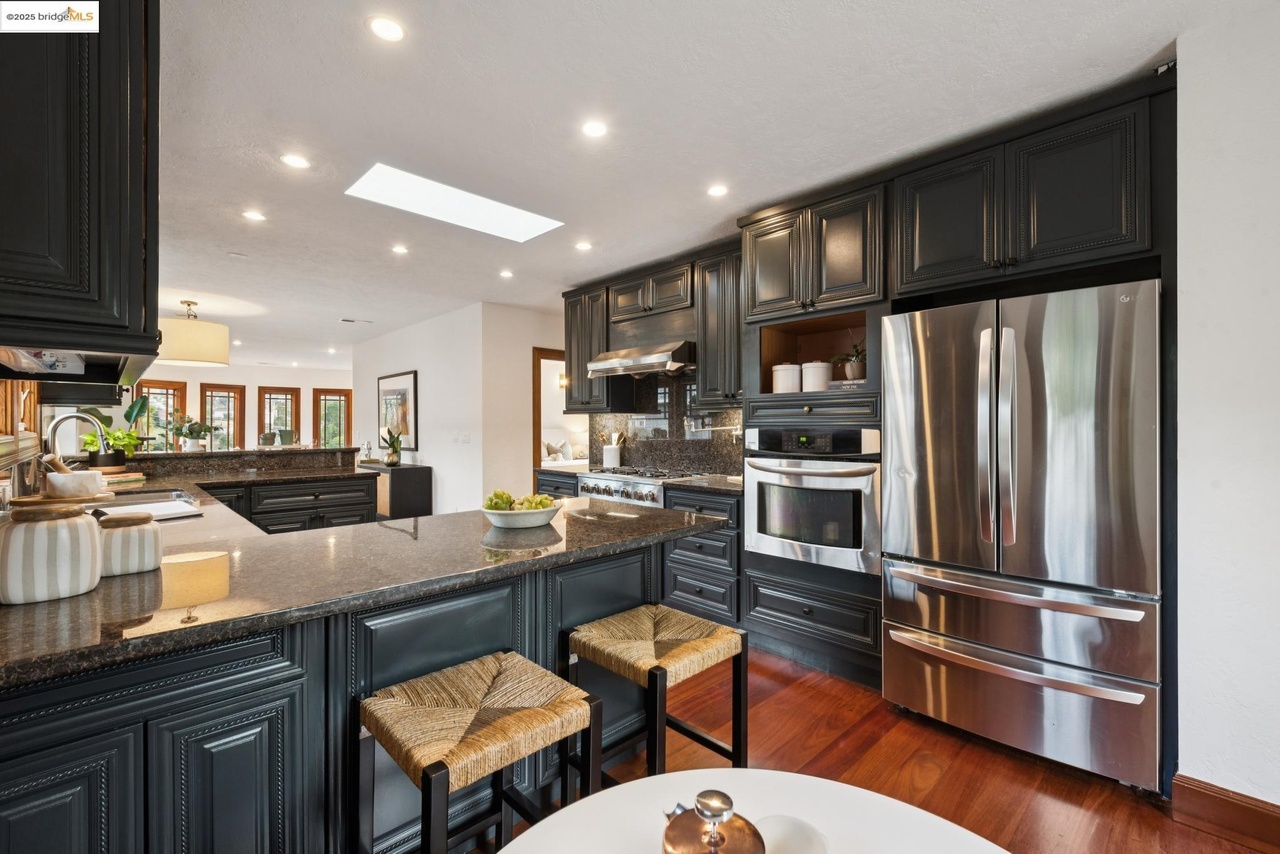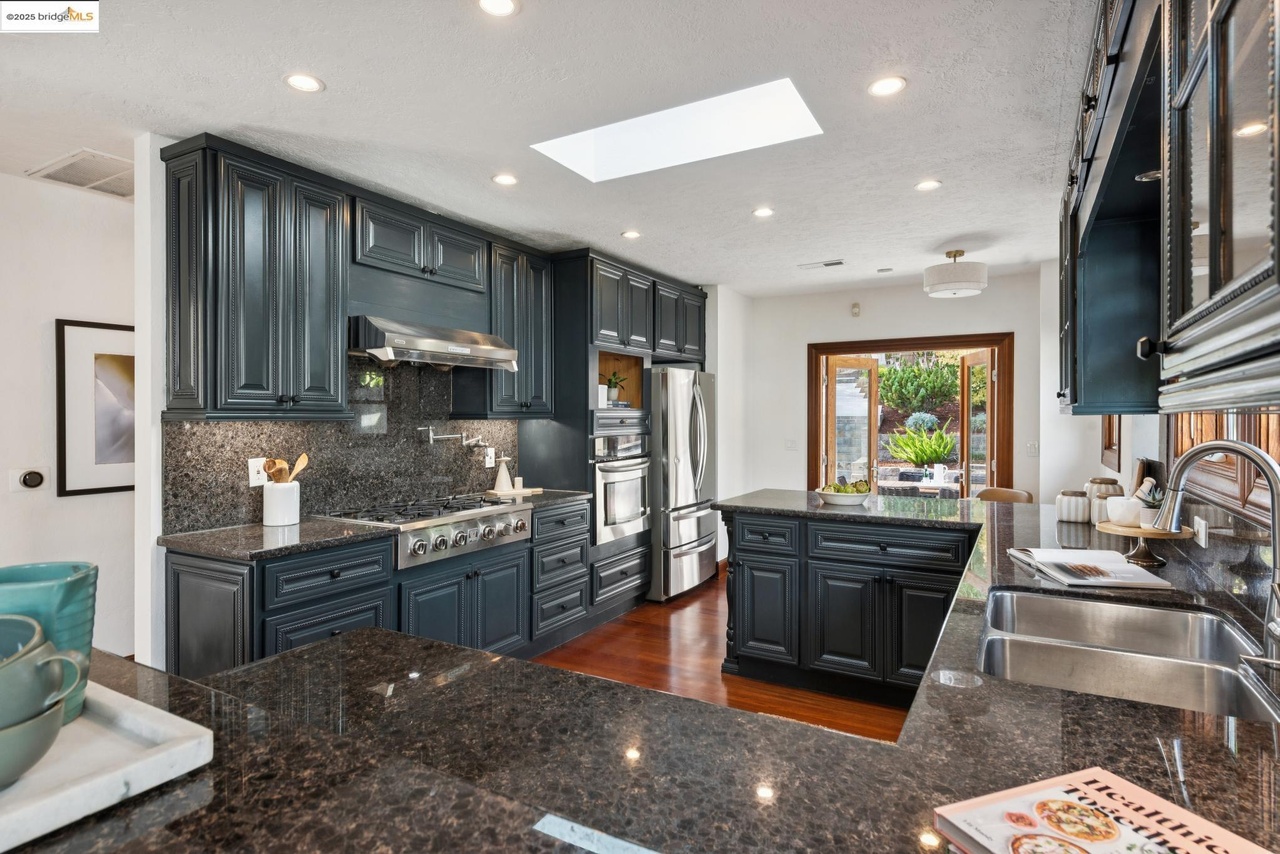 Rebuilt from the ground up in 2006–07, this stunning 4-bedroom, 3-bath home blends timeless Mediterranean style with modern comfort. Enjoy serene hillside views, a spacious yard, and expansive patios perfect for entertaining. The chef’s kitchen, featuring granite counters and premium finishes, anchors the home’s open and inviting layout.