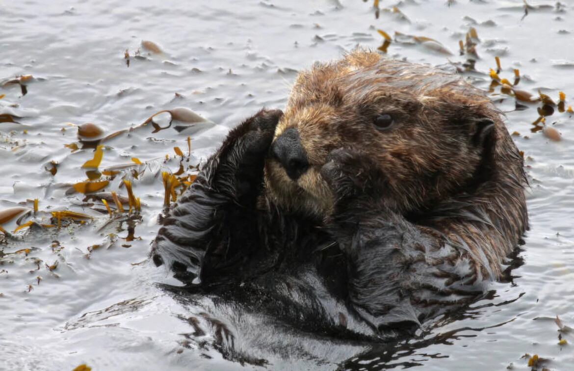 A southern sea otter settles down to rest in a small patch of Egregia (feather boa kelp) on July 26, 2014. (Lilian Carswell/USFWS via Bay City News)