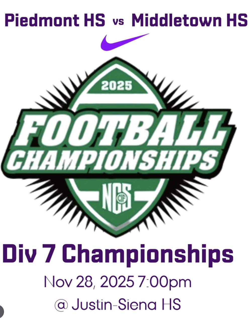 The Highlanders now advance to the NCS championship against Middletown on Nov. 28 at Justin-Siena-Napa. Piedmont lost at top-seeded Middletown in the second game of the year, 32-17.