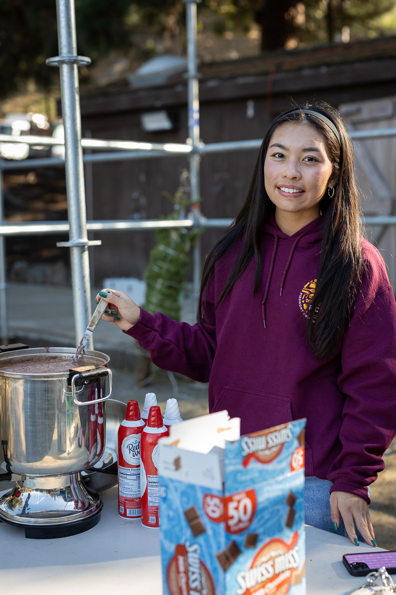 PCSC service crew member Stephanie Lee serves hot cocoa