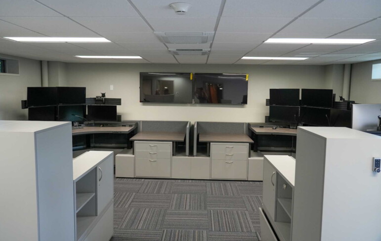 The dispatch center is much more spacious than the old quarters. Also, an old fireplace was removed from the building and a new bathroom was built. Dispatchers used to have to travel a much longer distance to use the facilities.