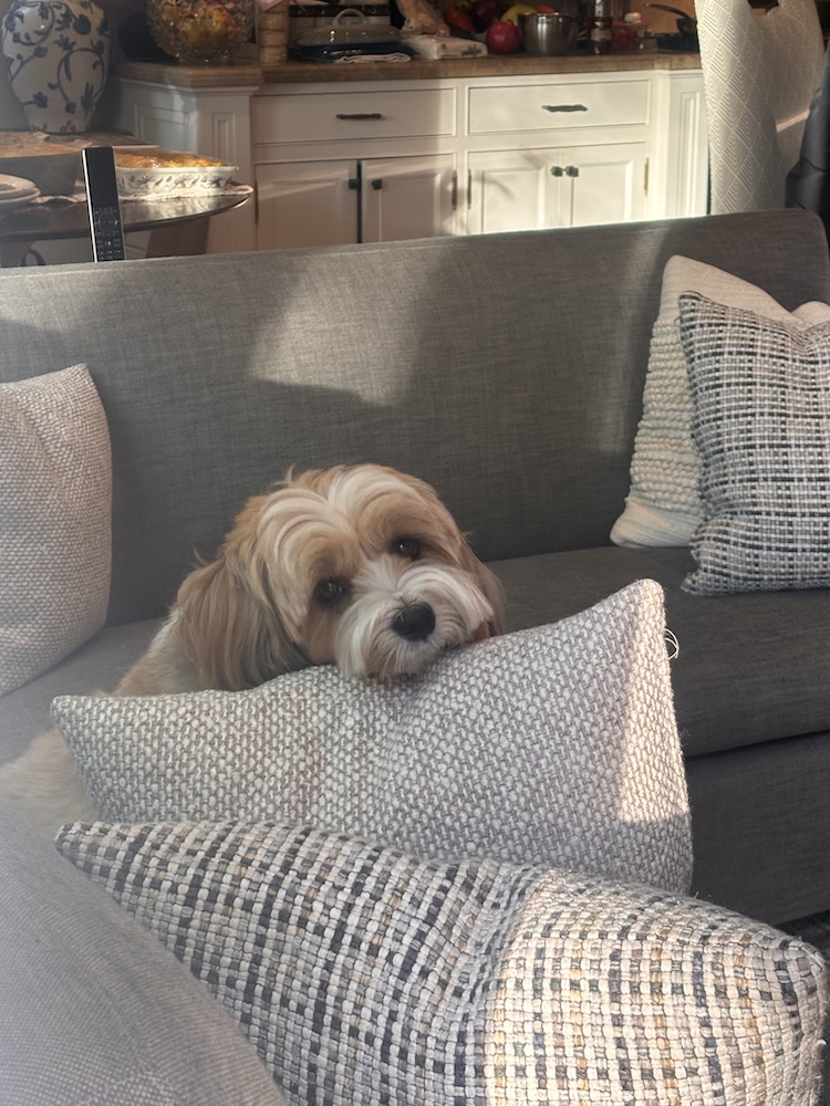 Dislikes: Penny doesn’t like when someone’s vacuuming. She also doesn’t like long car rides or when we put bows in her hair!