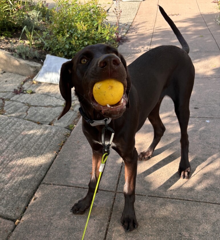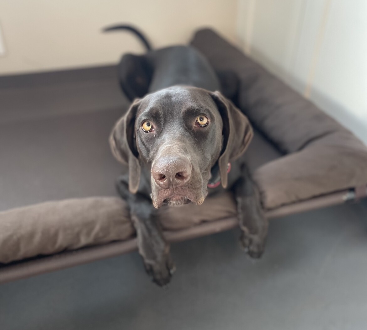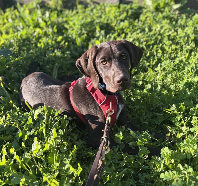 Adoption story: After scouring the media (Instagram) we found a Pointador breeder in Arizona. When we met the puppies, one in particular was very engaging, friendly, and super playful. Of course, despite our meticulous planning to arrive home on time, he happened to be the largest puppy, and he couldn’t fit in the carrier that we had purchased for the trip. After a few mishaps (a trip to the local pet store for a new carrier, a missed flight home, and failing to video the kids’ first interaction), Moose became the newest member of the Joseph family.