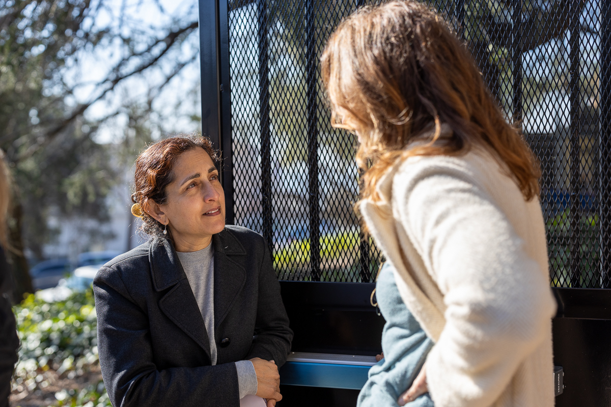 New city Finance Director Kiran Bawa talks with former mayor Jen Cavenaugh