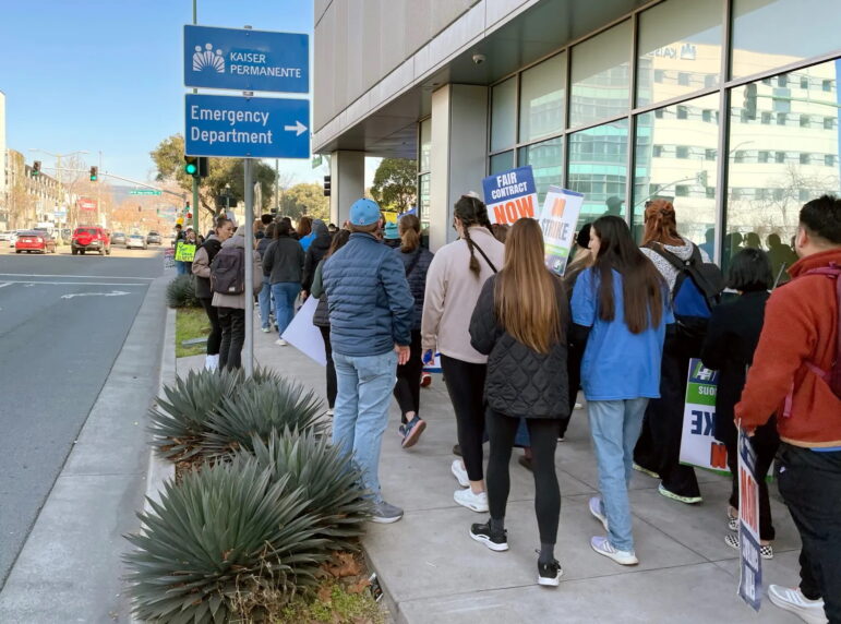 In Oakland, the picketing began at 7 a.m. outside Kaiser Oakland Medical Center facilities at 3600 Broadway.