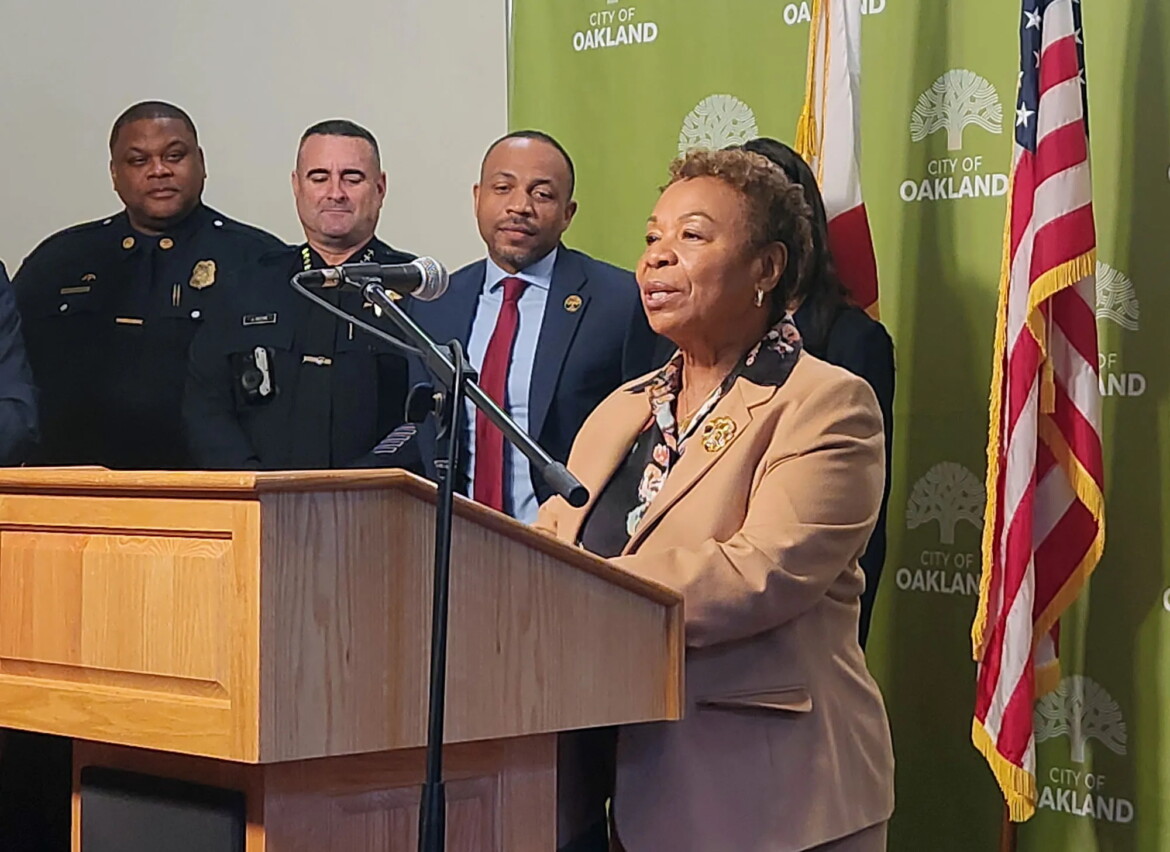 Oakland Mayor Barbara Lee touted the city’s double-digit, year-over-year drop in crime Wednesday while acknowledging that gun violence continues to traumatize many communities.