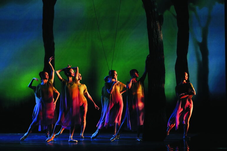 While the multiple duets between the principal characters reflect their changing feelings, the group scenes with the corps are perhaps more thrilling, including a second act dream sequence in which Tatiana is spooked by creatures (a bear turns out to be Onegin); and the welcome appearances of colorful sprites, who fluidly usher in the seasons. Tim Yip, an Oscar winner for art direction for “Crouching Tiger, Hidden Dragon,” created the eye-catching costumes.